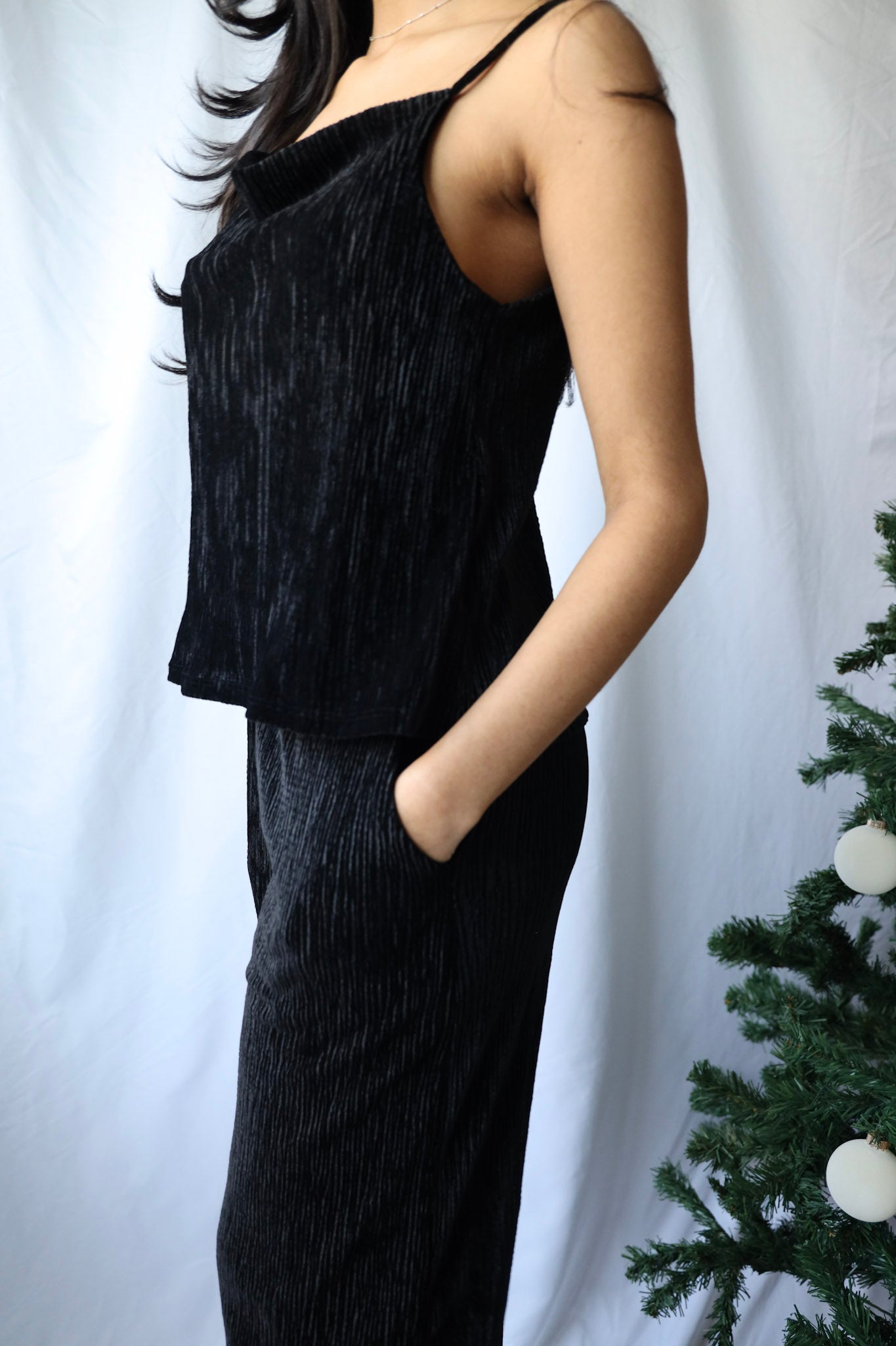 Upgrade your wardrobe with the Velvet Cowl Neck Pant Set - the perfect combination of sophistication and comfort for any occasion. This luxe Christmas, holiday, or NYE outfit will have you feeling stylish and cozy at the same time.