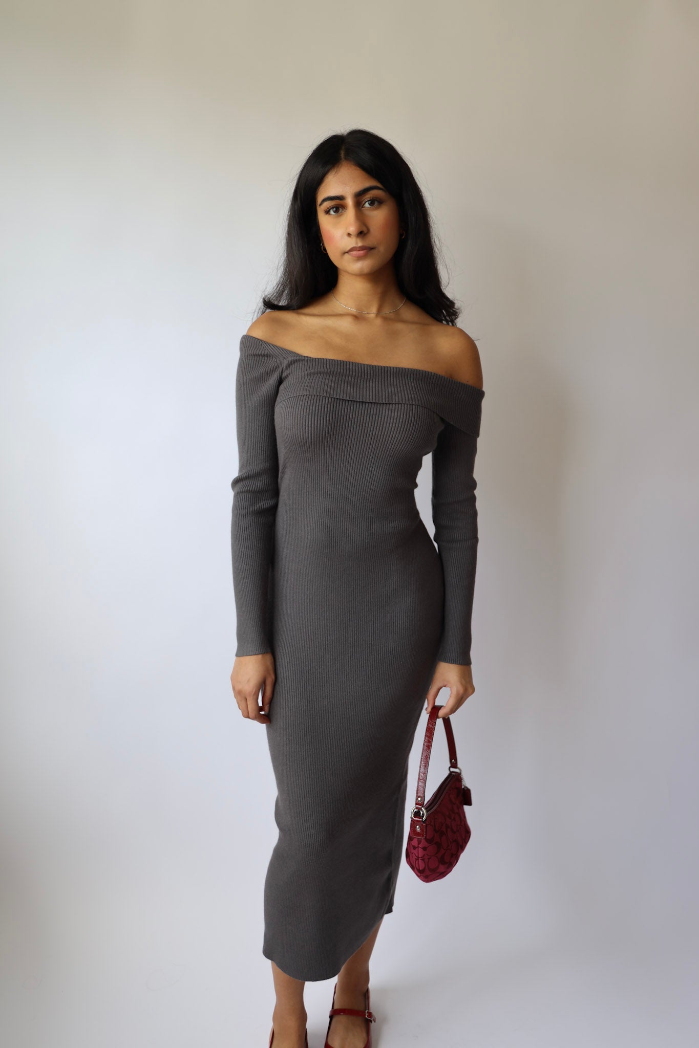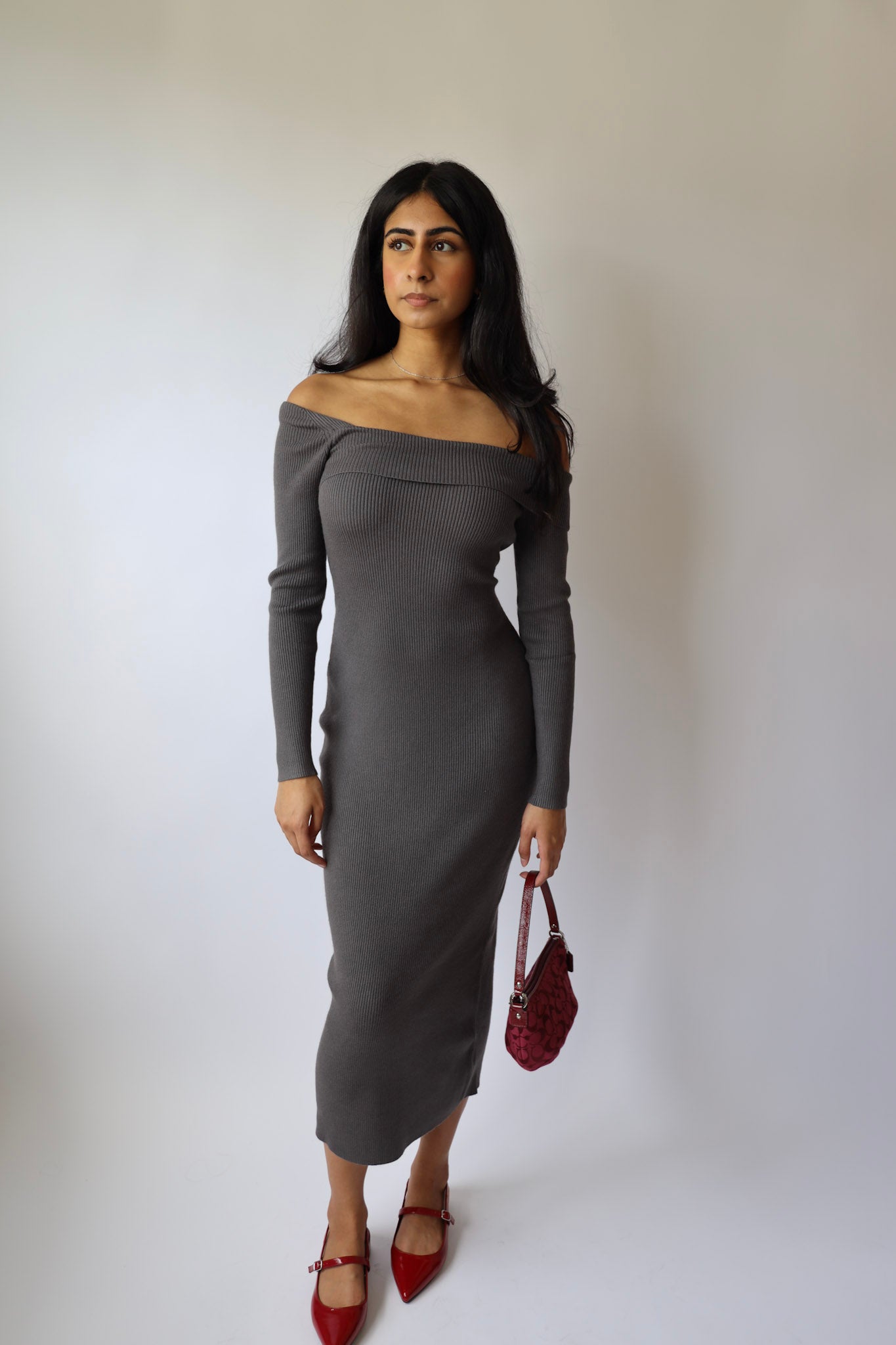 Get ready to slay in this sassy sweater maxi dress! With its ribbed texture and off-shoulder design, you'll be turning heads and breaking hearts left and right. Don't say we didn't warn you! (But seriously, this dress is a total showstopper.)
