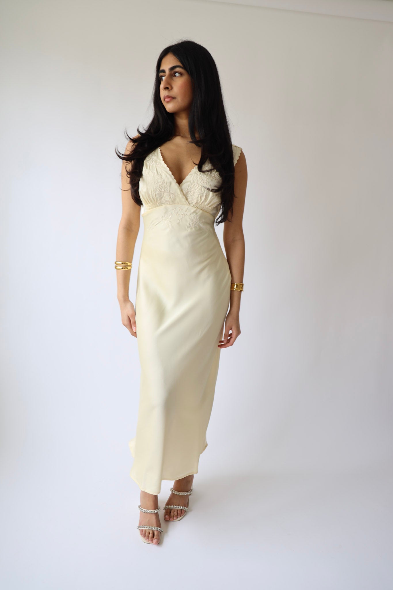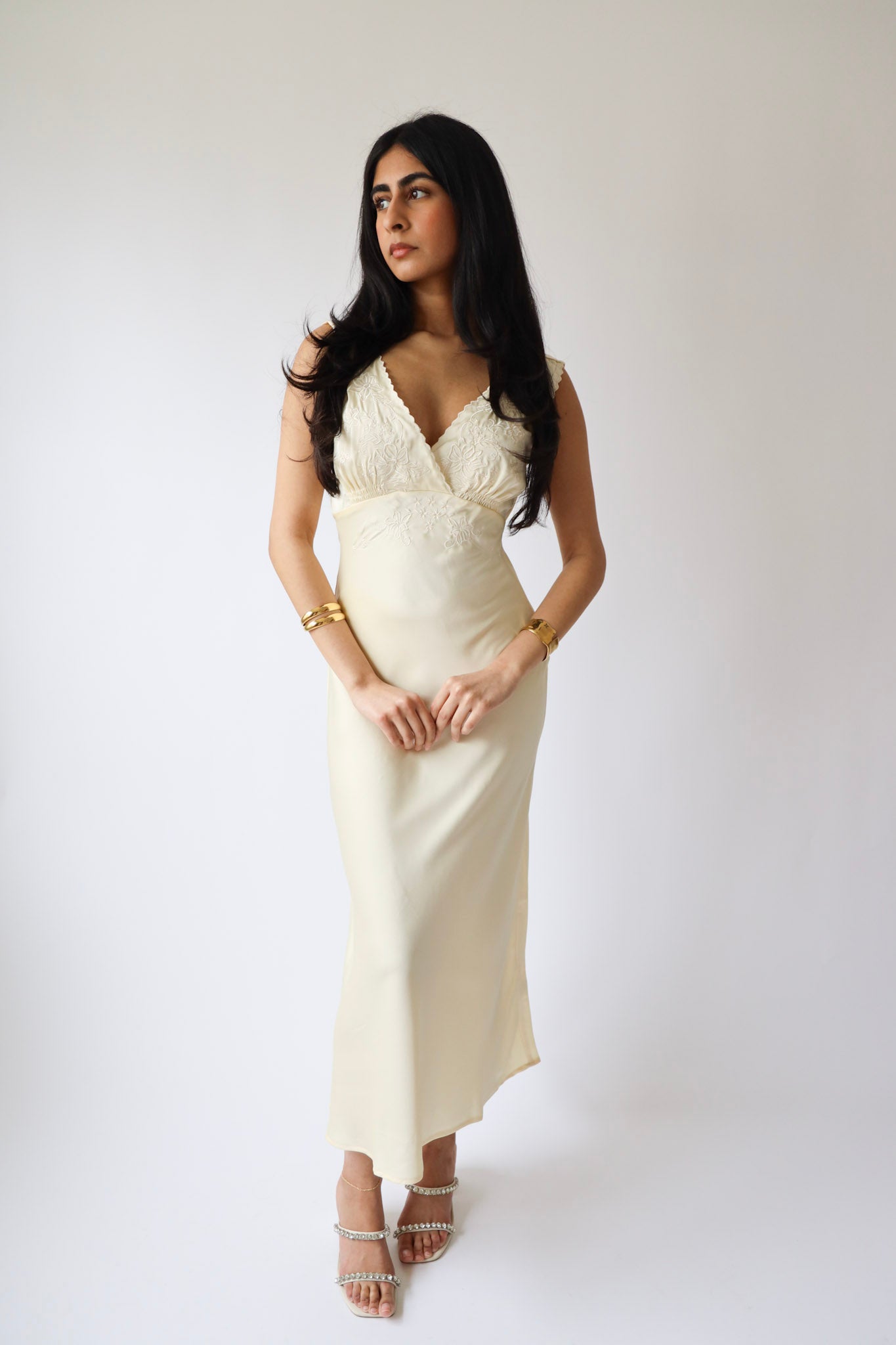 For the romantics. This cream midi dress features delicate floral embroidery and a flattering V-neckline that feels vintage yet timeless. Perfect for bridal showers, graduations, or garden weddings, it’s a dreamy neutral you’ll reach for over and over again.