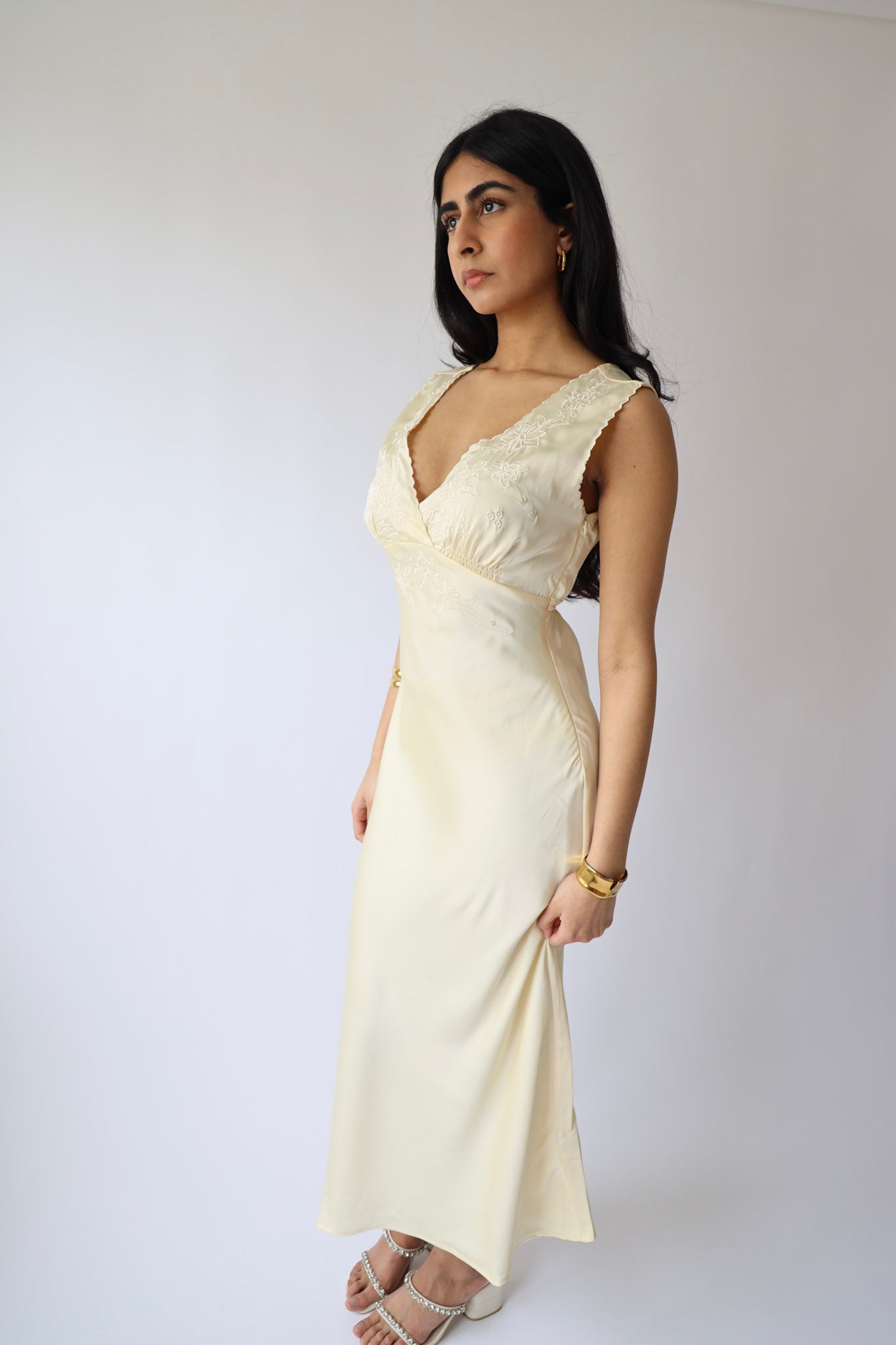 Intricate floral embroidery on bust