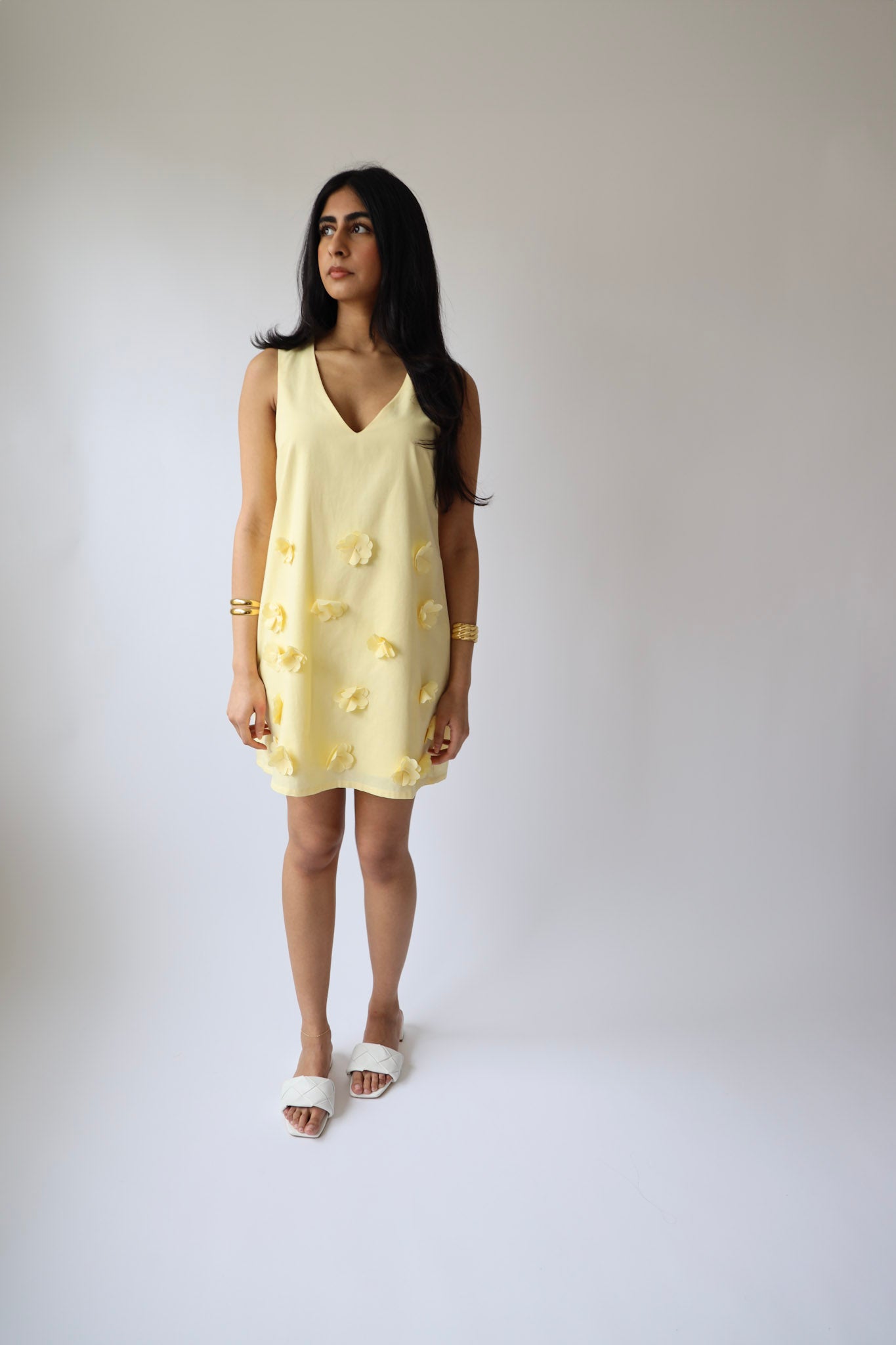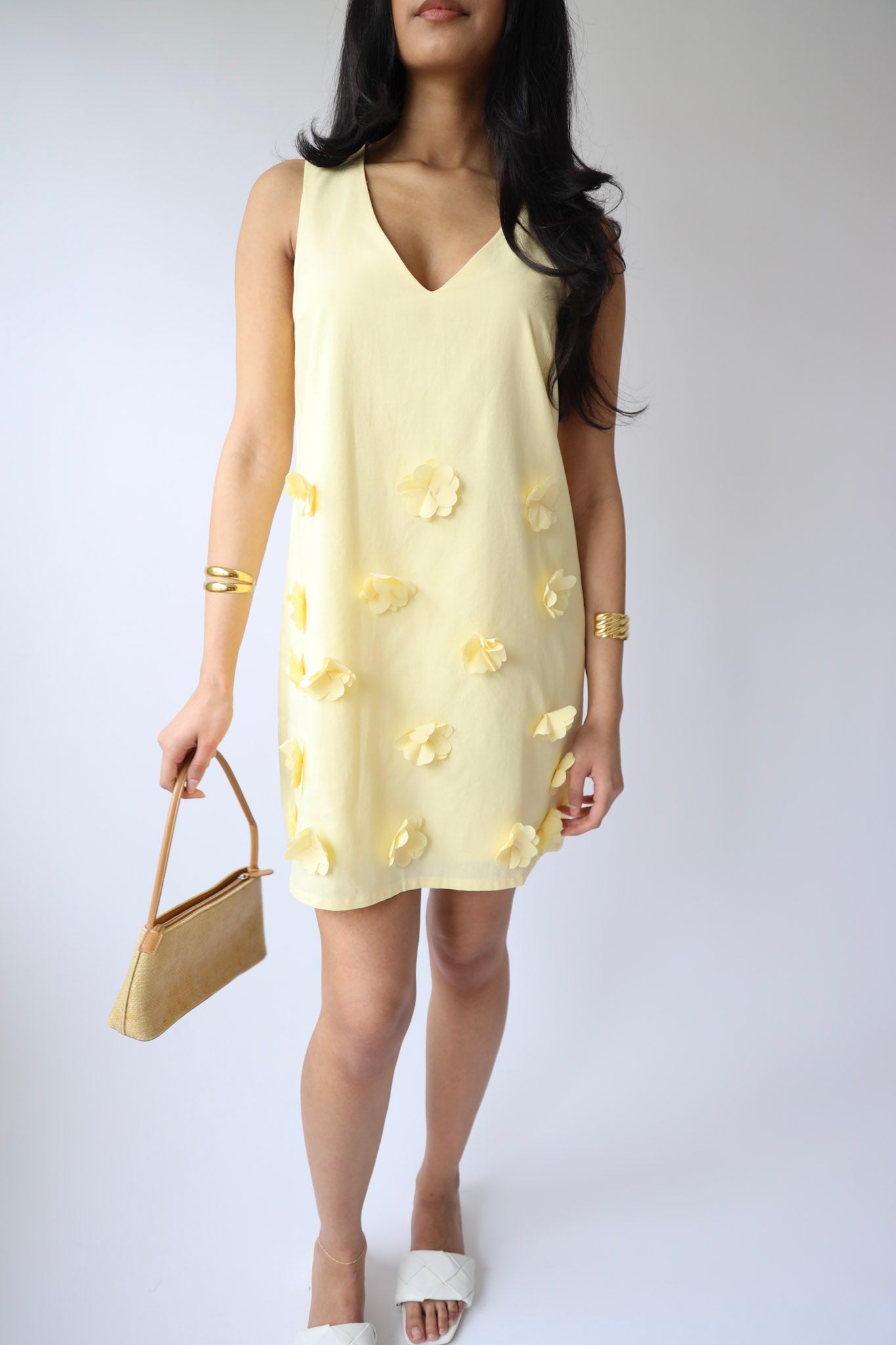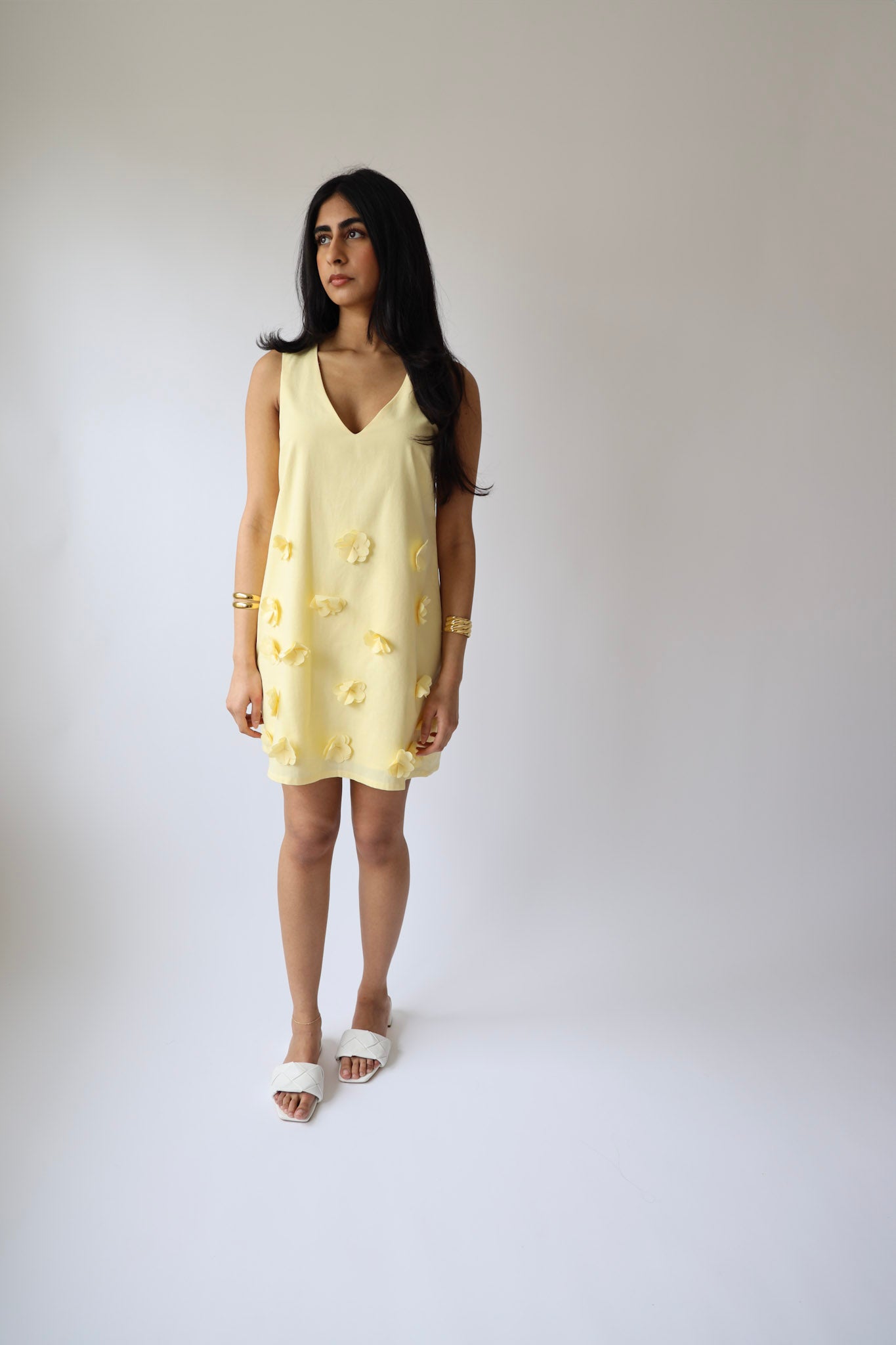 Bright, breezy, and full of charm. The Lemon Drop Mini Dress is a soft A-line silhouette in a buttery yellow with playful 3D floral appliqués. Lightweight and easy to wear, it’s perfect for graduation parties, garden strolls, or sweet summer getaways.
