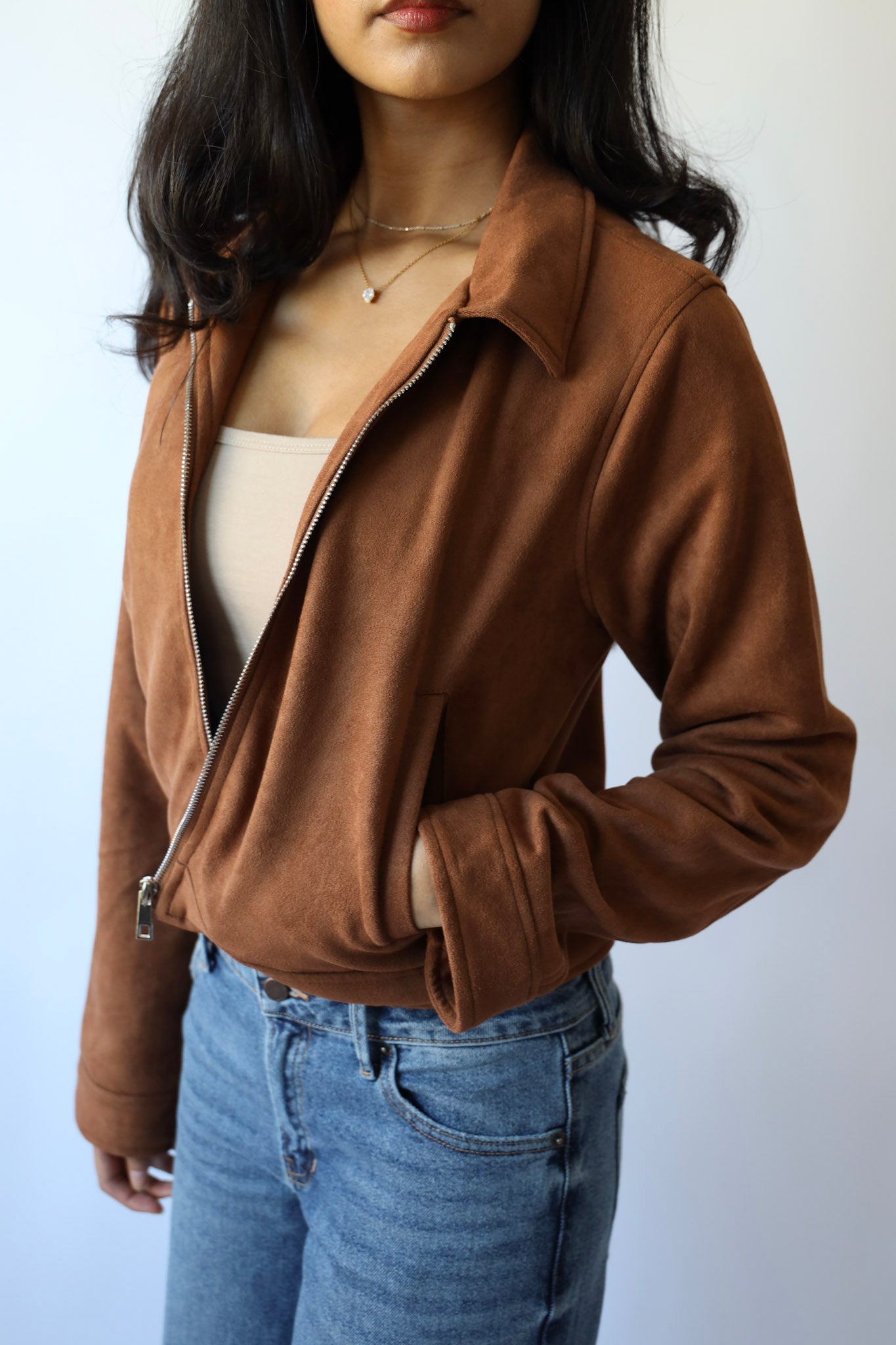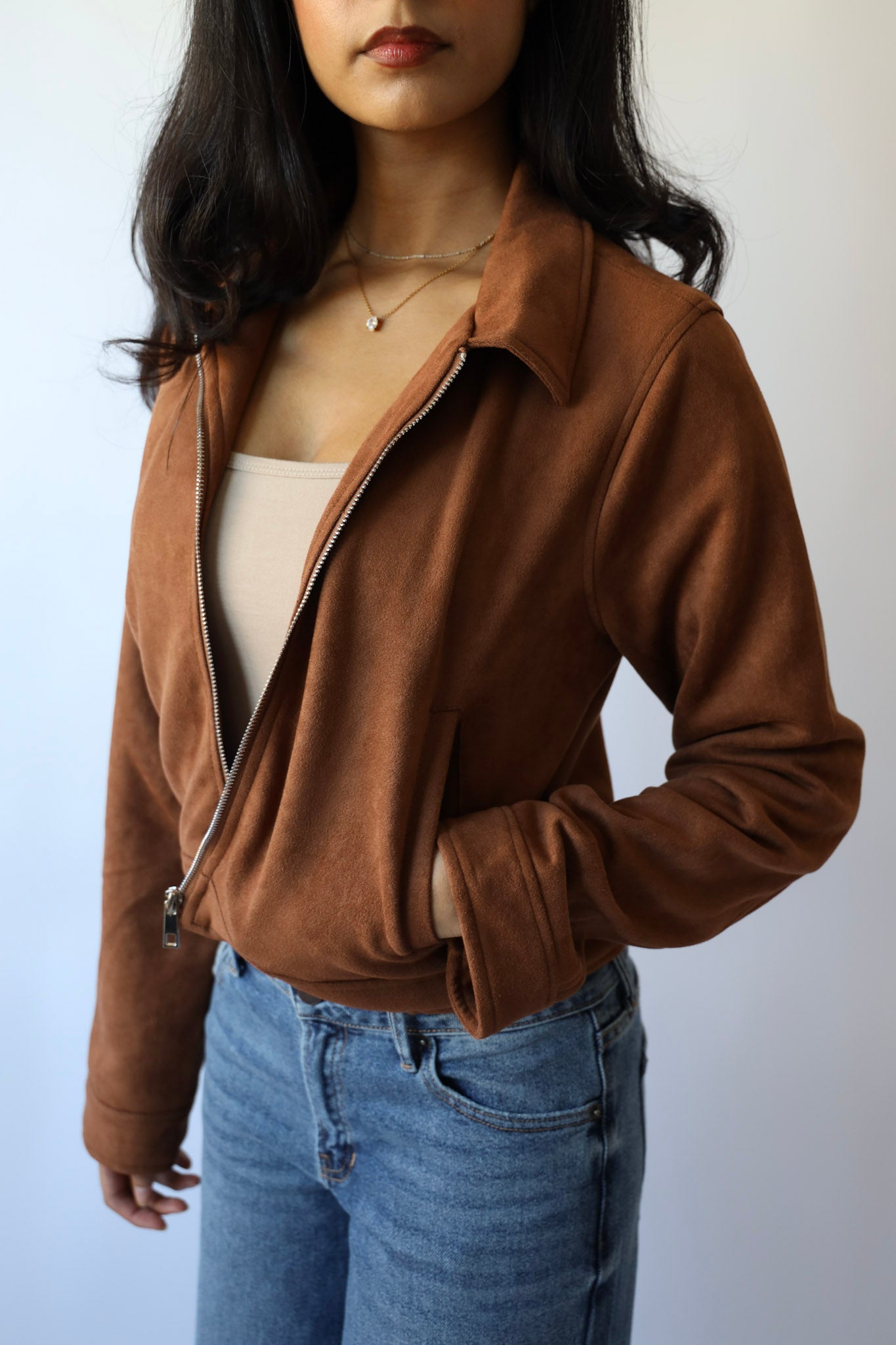 Upgrade your fall wardrobe with our Cropped Faux Suede Zip Up Jacket. This 90s style jacket adds a touch of nostalgia to any outfit, while keeping you warm and stylish. Zip up in this trendy piece for the perfect fall fashion look.