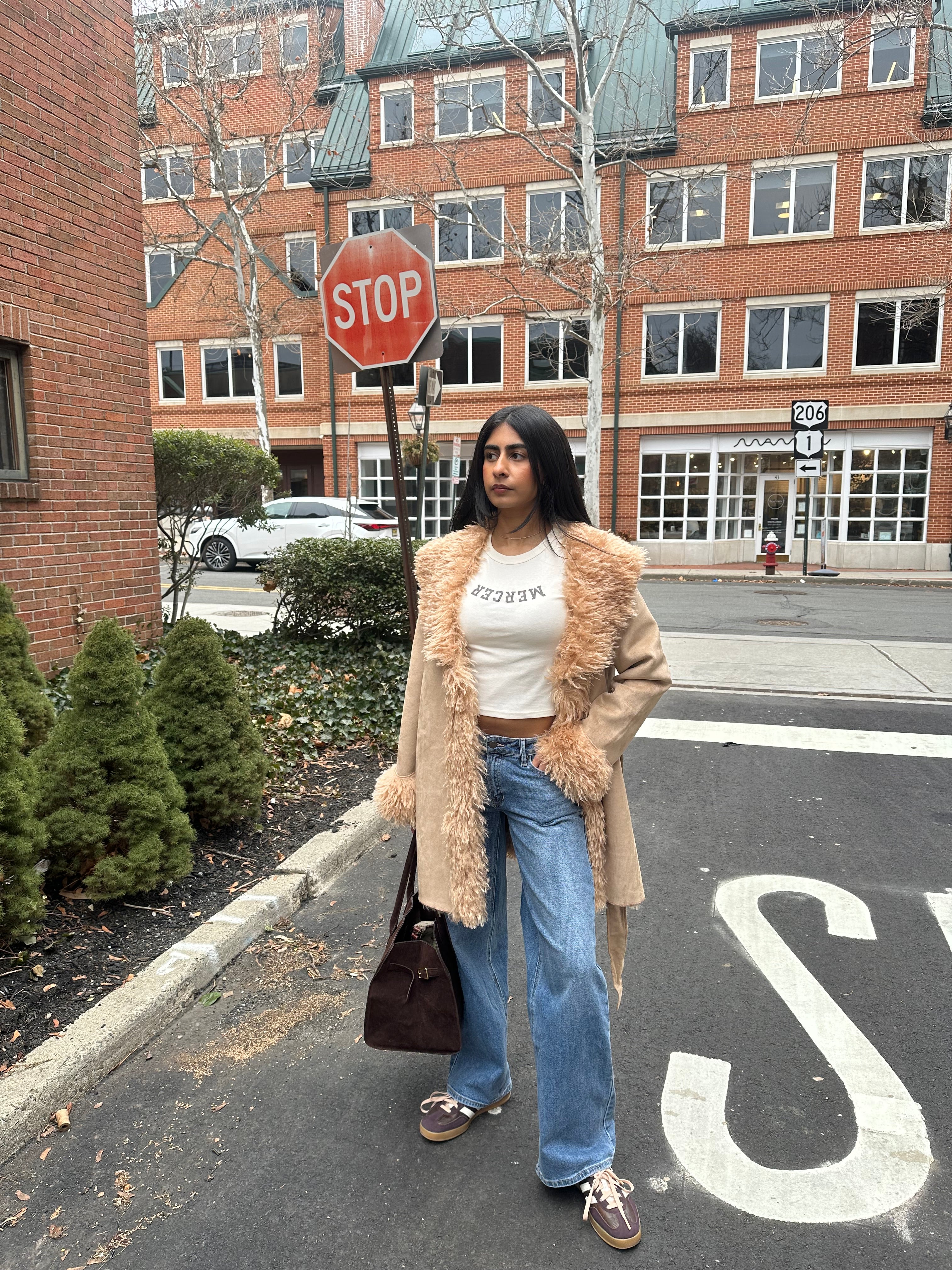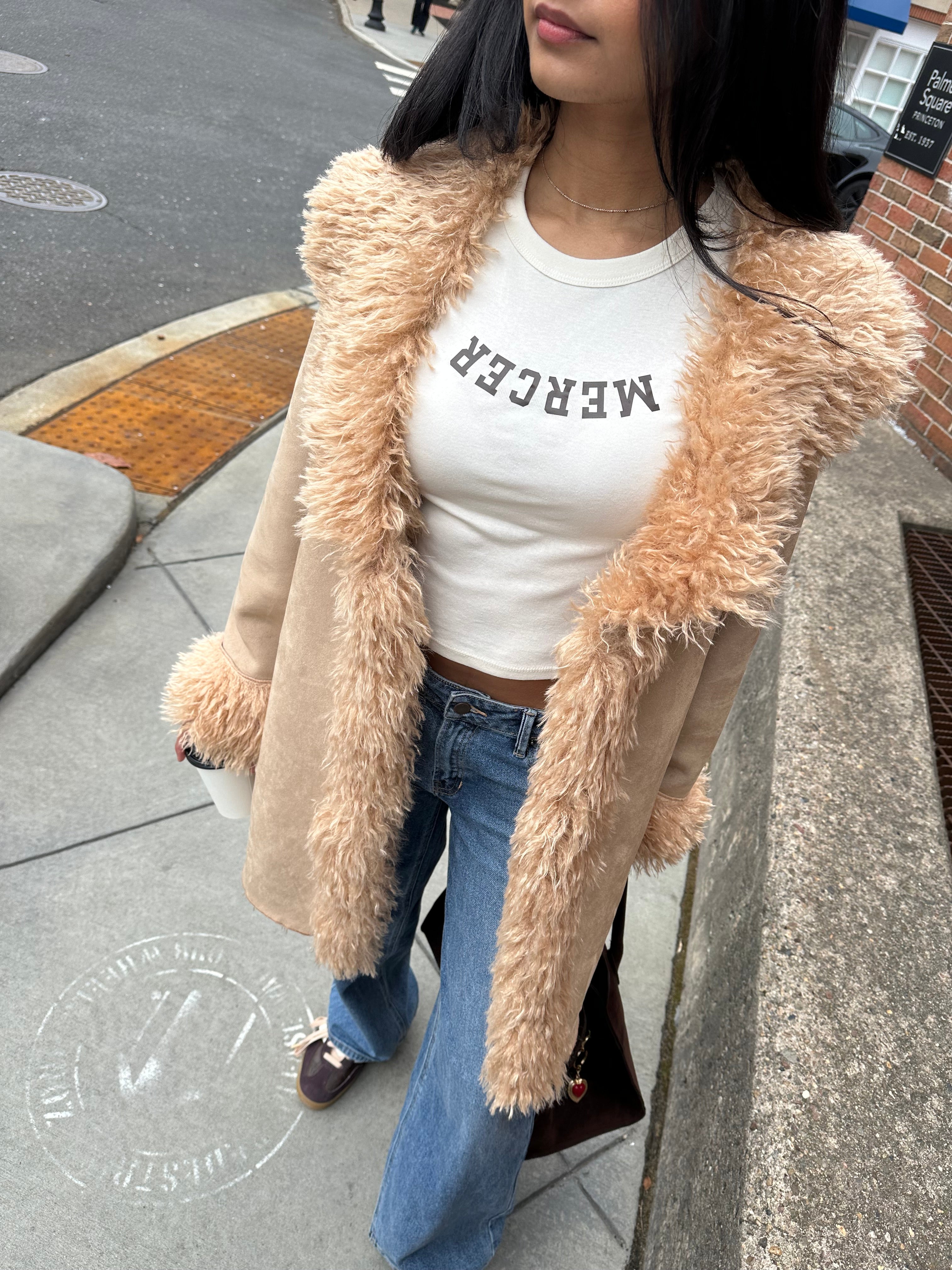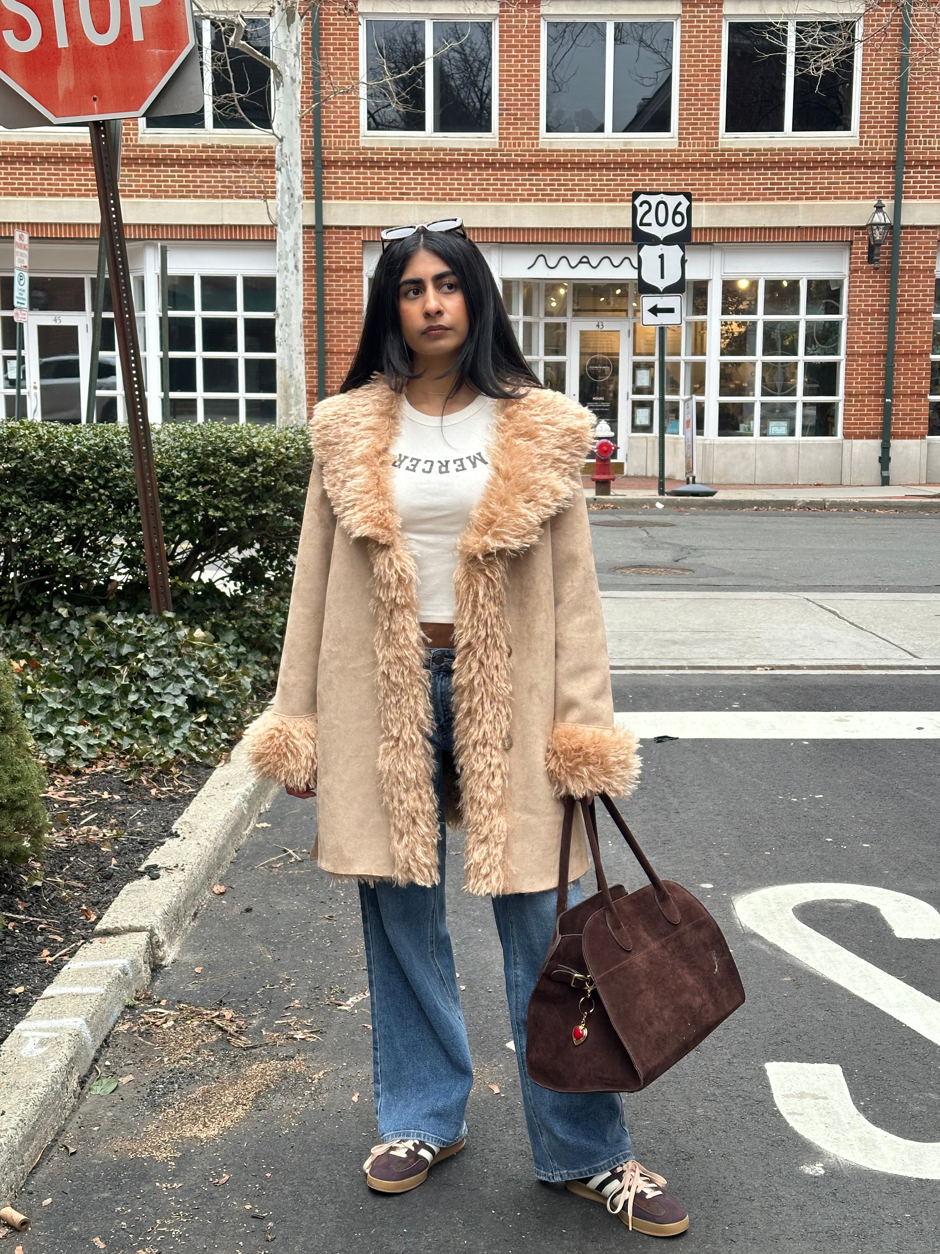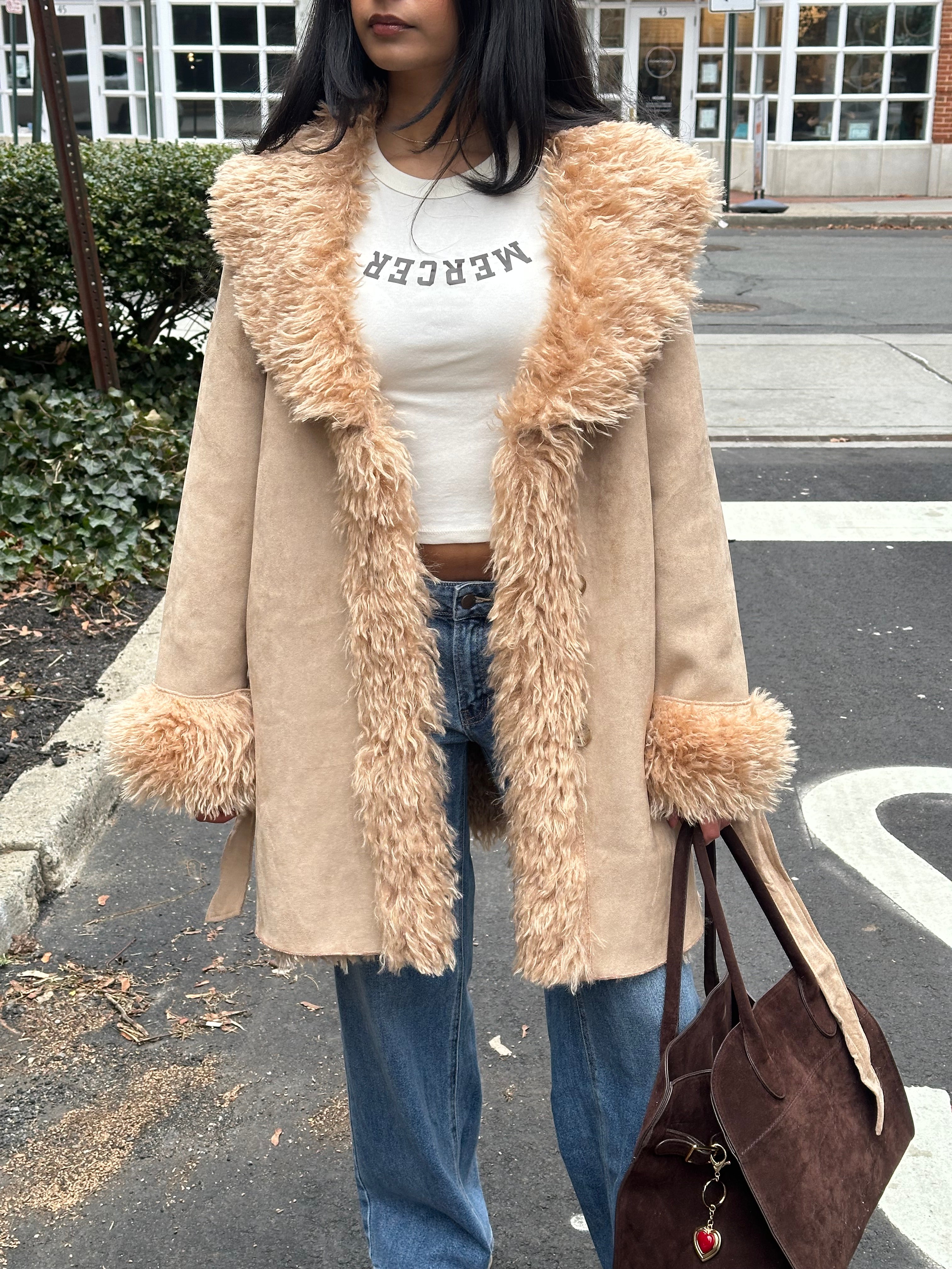 Step back into the 90s with our faux fur trimmed belted jacket. Super soft and perfect for layering, this jacket is sure to keep you warm and stylish. Whether you pair it with low rise jeans and a casual white tee or dress it up for a night out, it's a Pinterest-worthy addition to your wardrobe. 😍