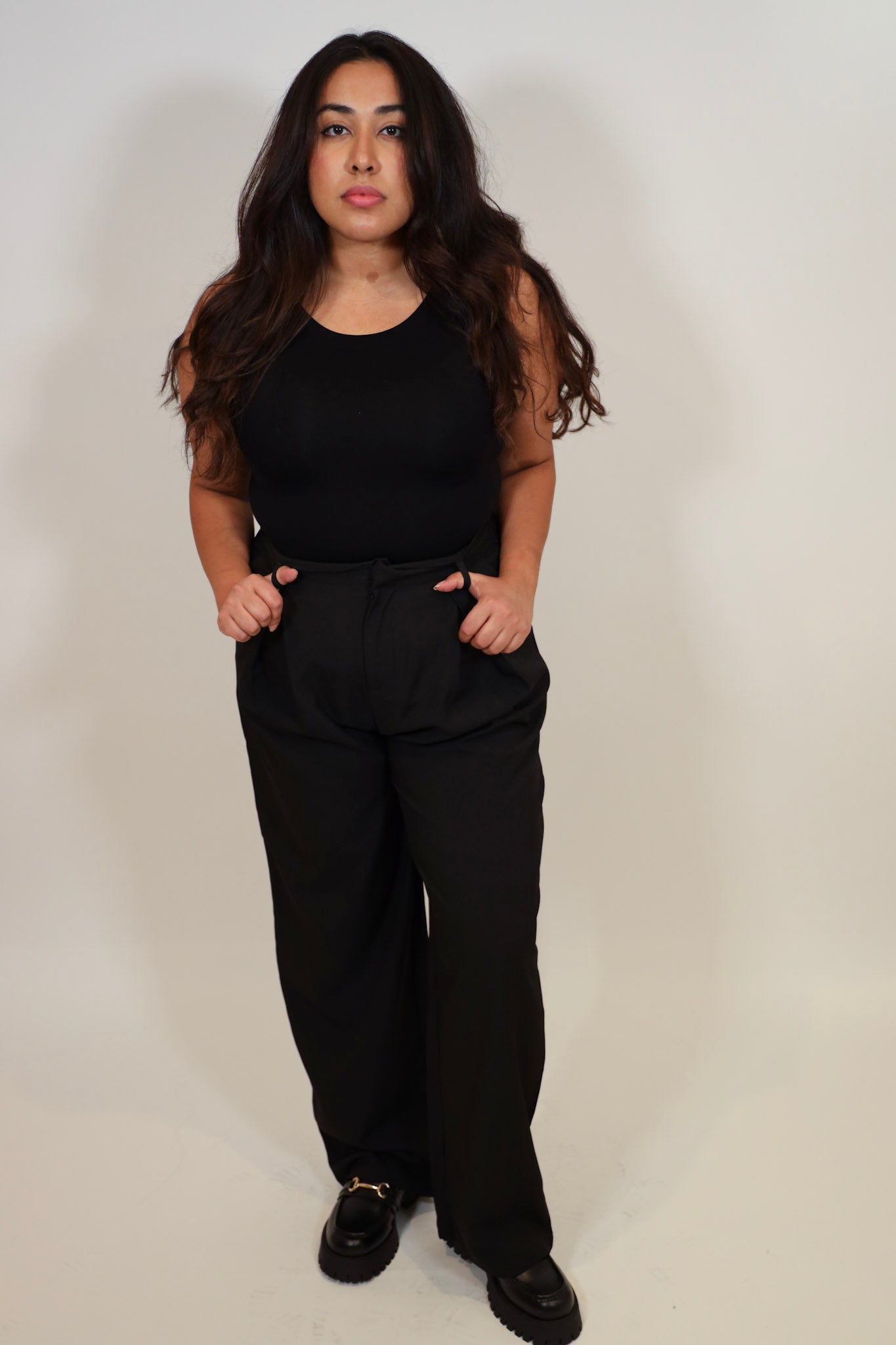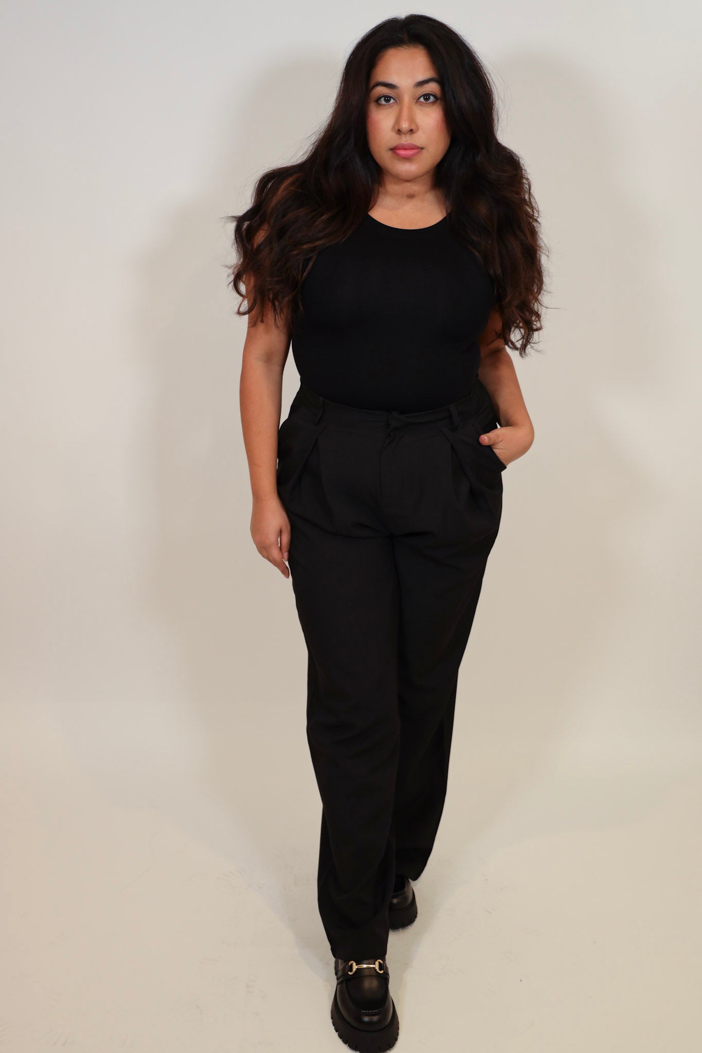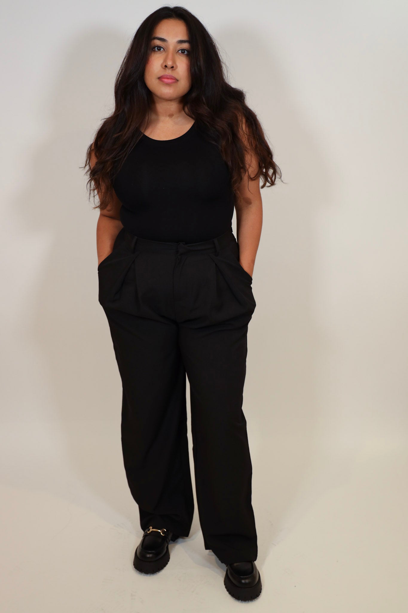 Roomy true to size, size down for a tighter fit.  Model is wearing a S/M