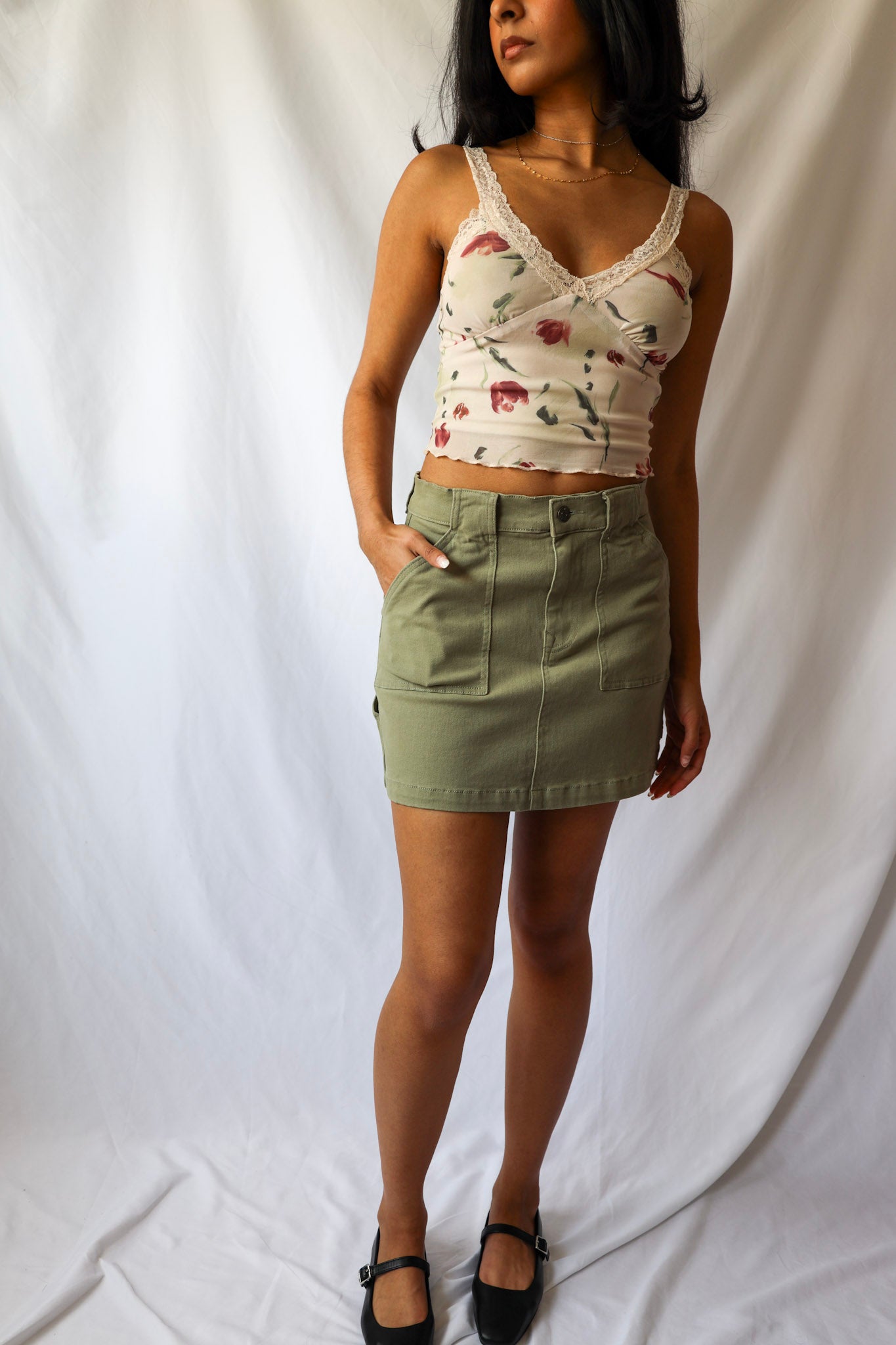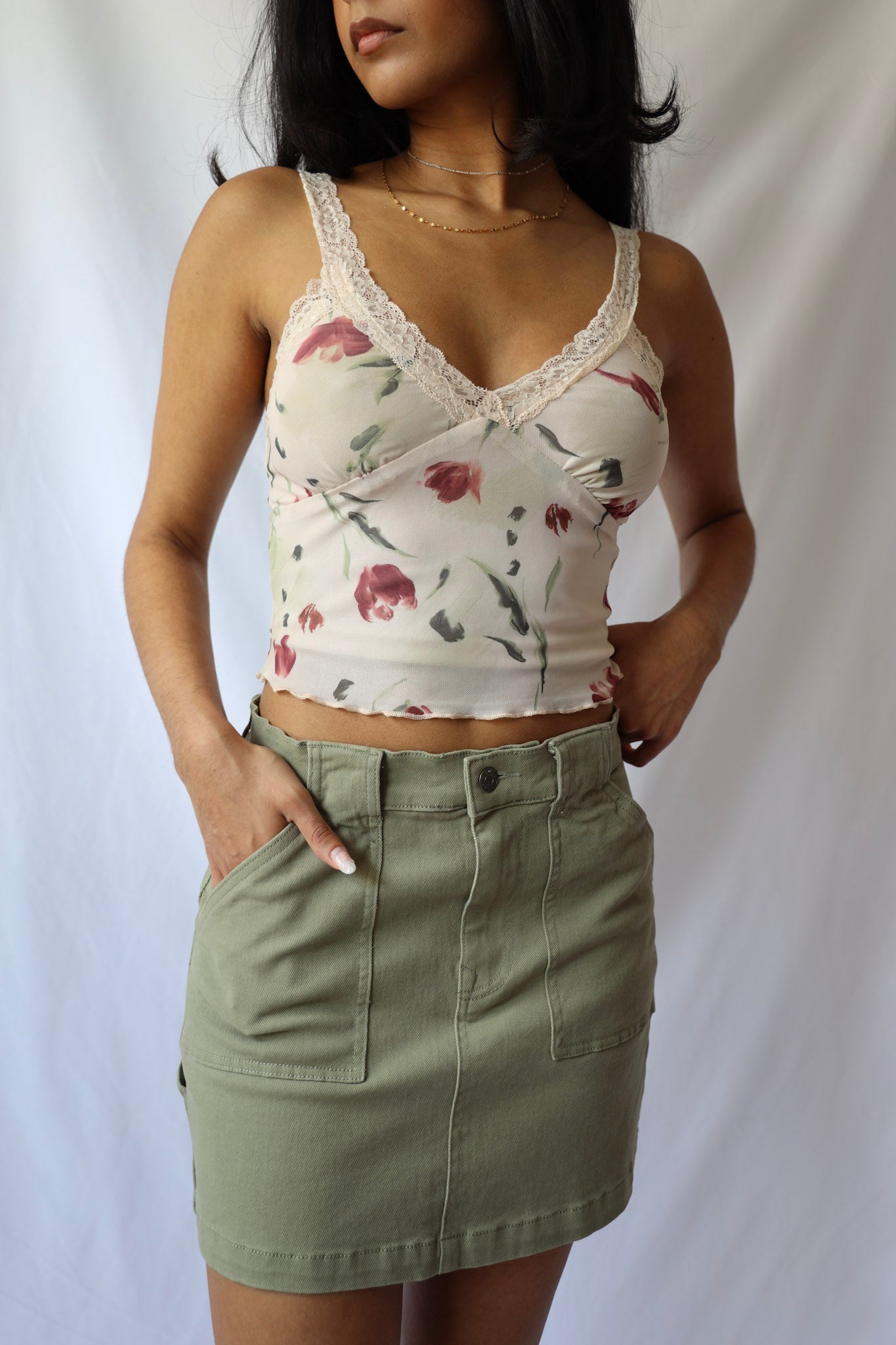 Add some playful and trendy vibes to your wardrobe with our Moody Floral Mesh Lace Shoulder Cami Top. Perfect for your Y2K inspired looks and summer outings, this top offers a mix of casual yet stylish flair. Whether paired with denim shorts or a cute mini skirt, this top will have you looking effortlessly chic.