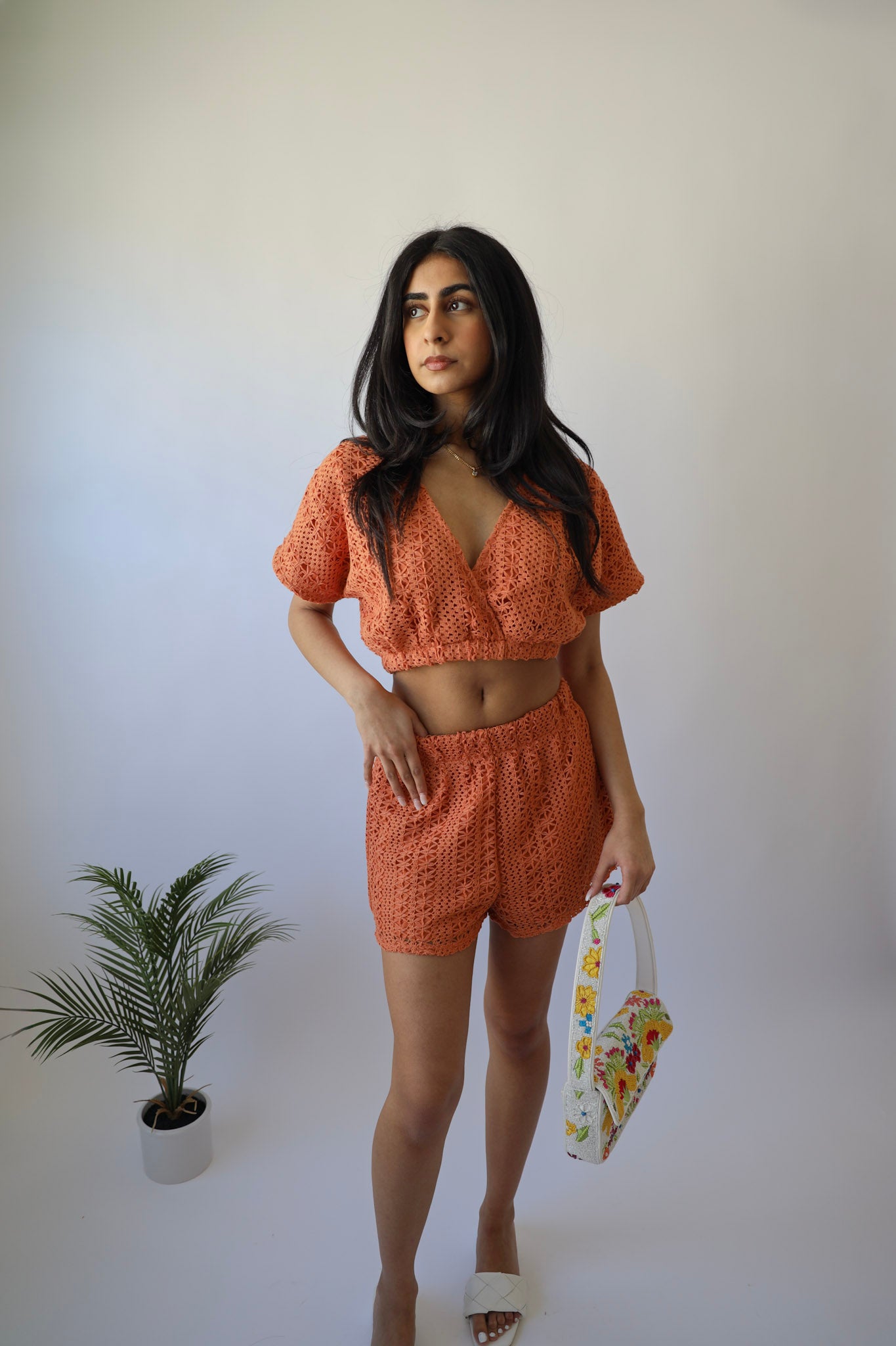 Get ready to turn heads this vacation with our Orange Cropped Crochet Top! Perfect for the resort or a spring/summer day, this top pairs beautifully with our matching shorts (sold separately). Get the complete look today!