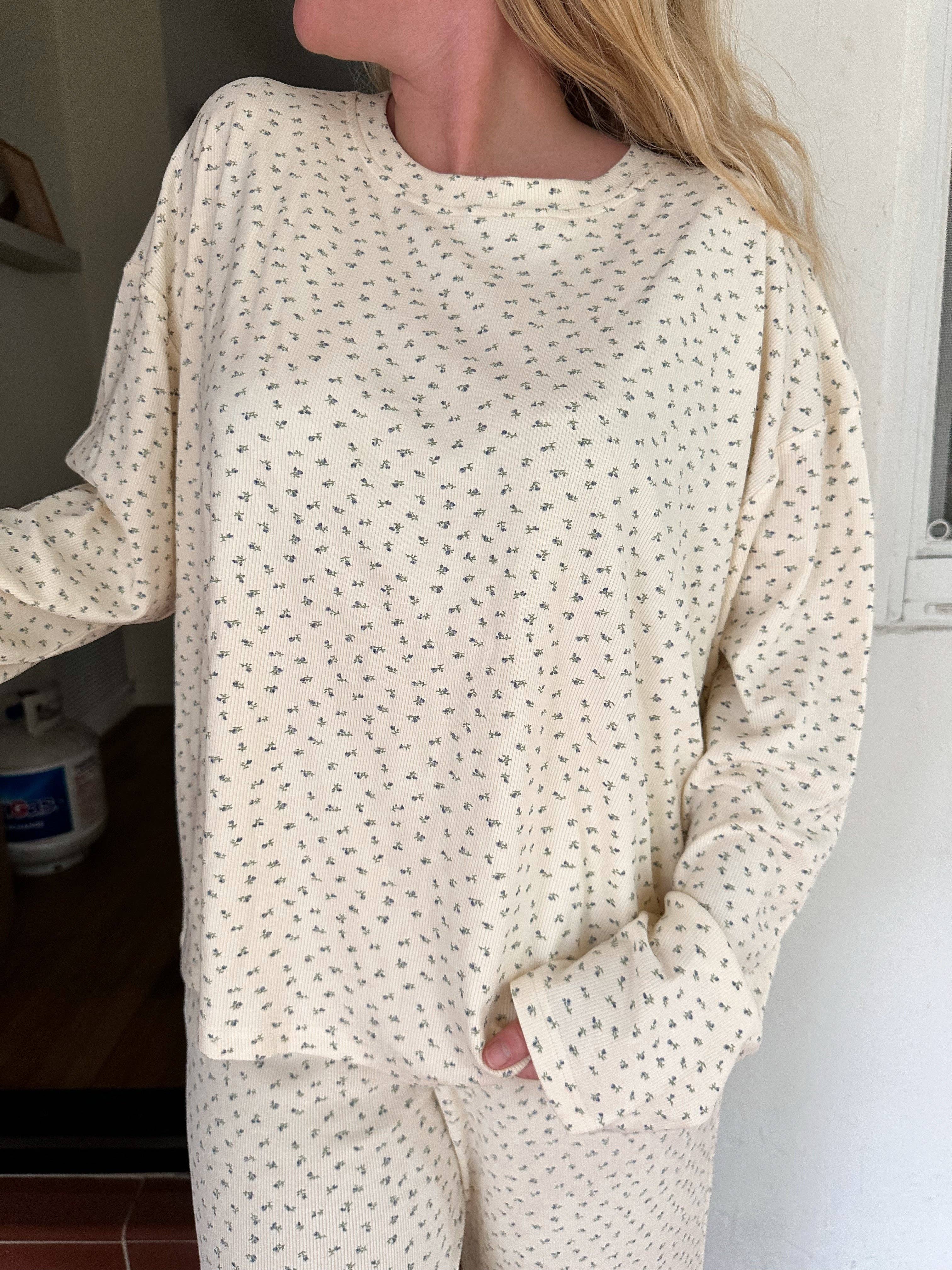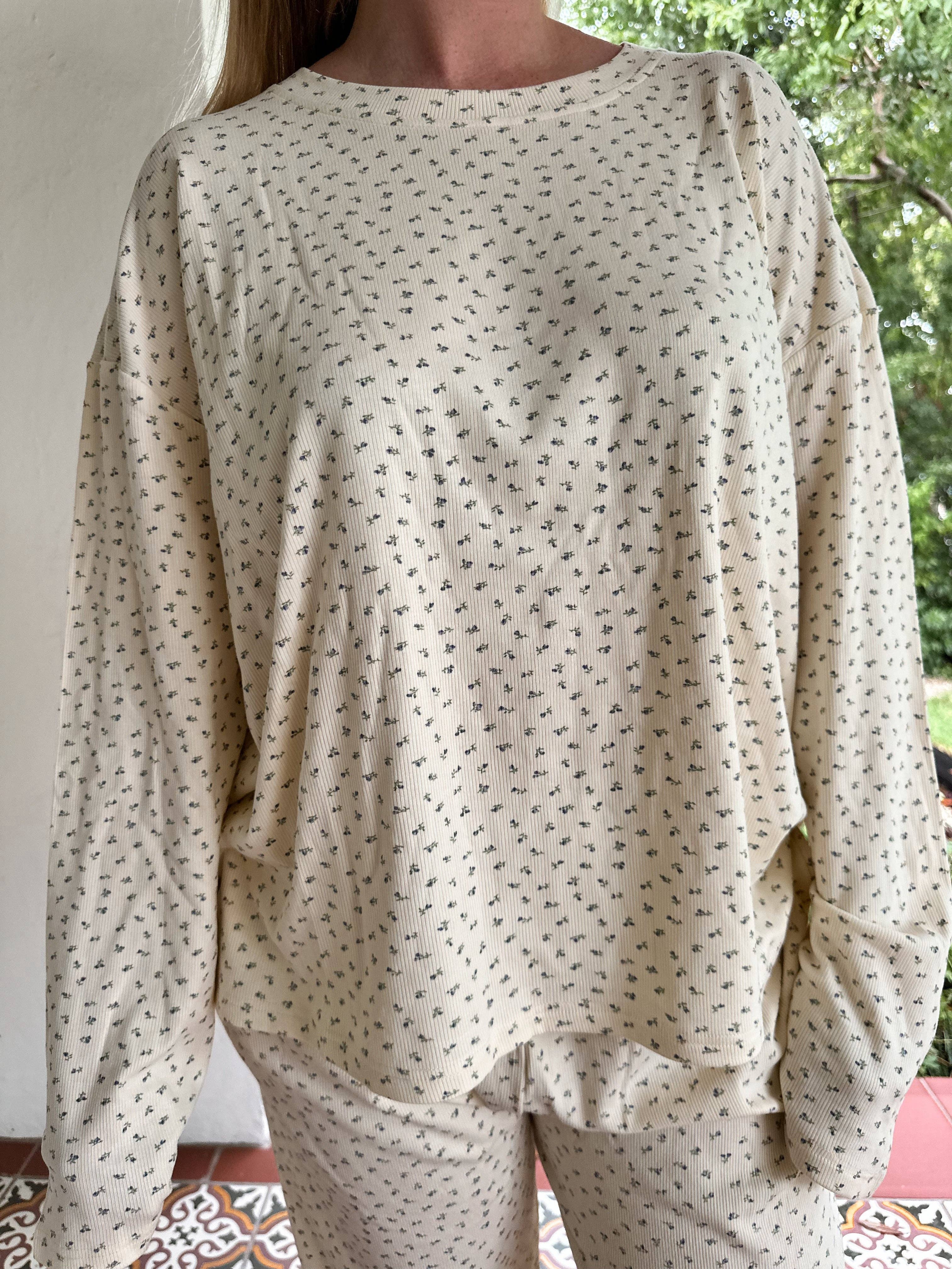 Sunkissed Coconut Butter Yellow Floral Long Sleeve Pajama Top