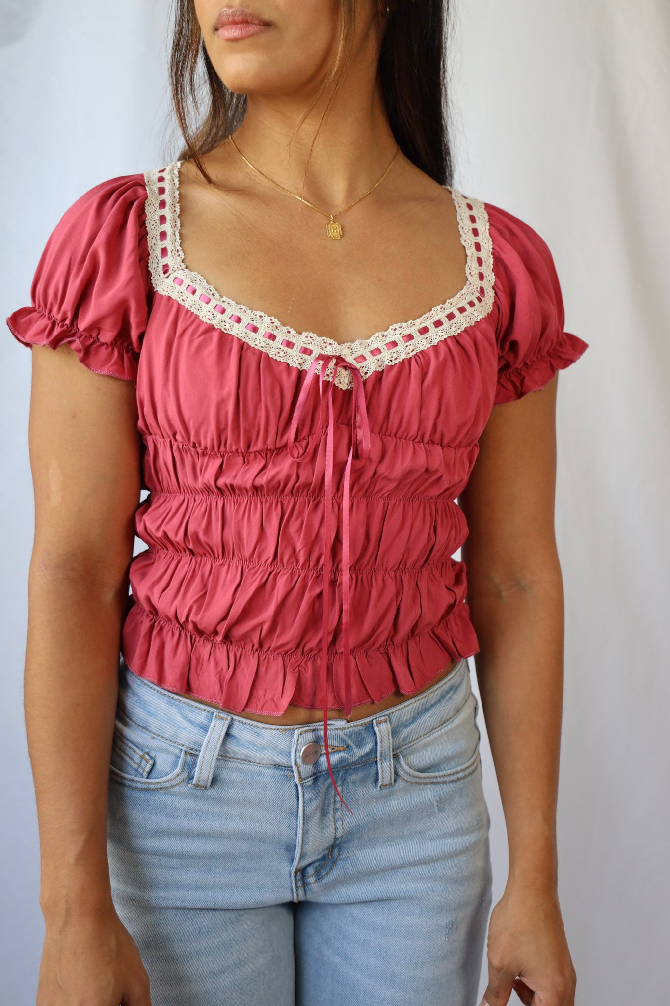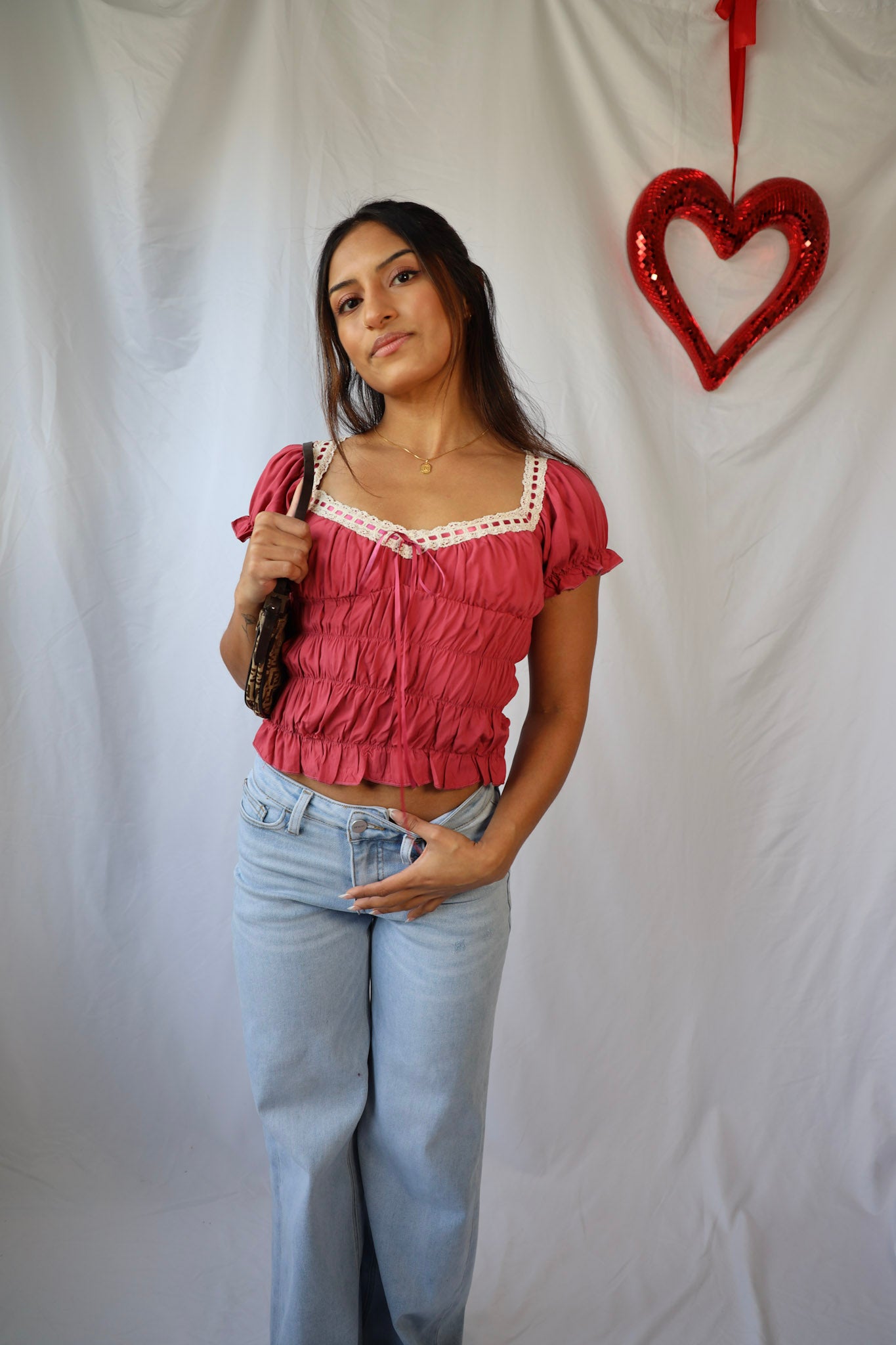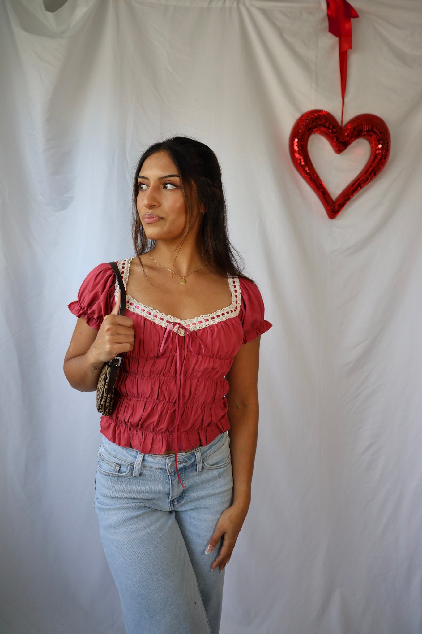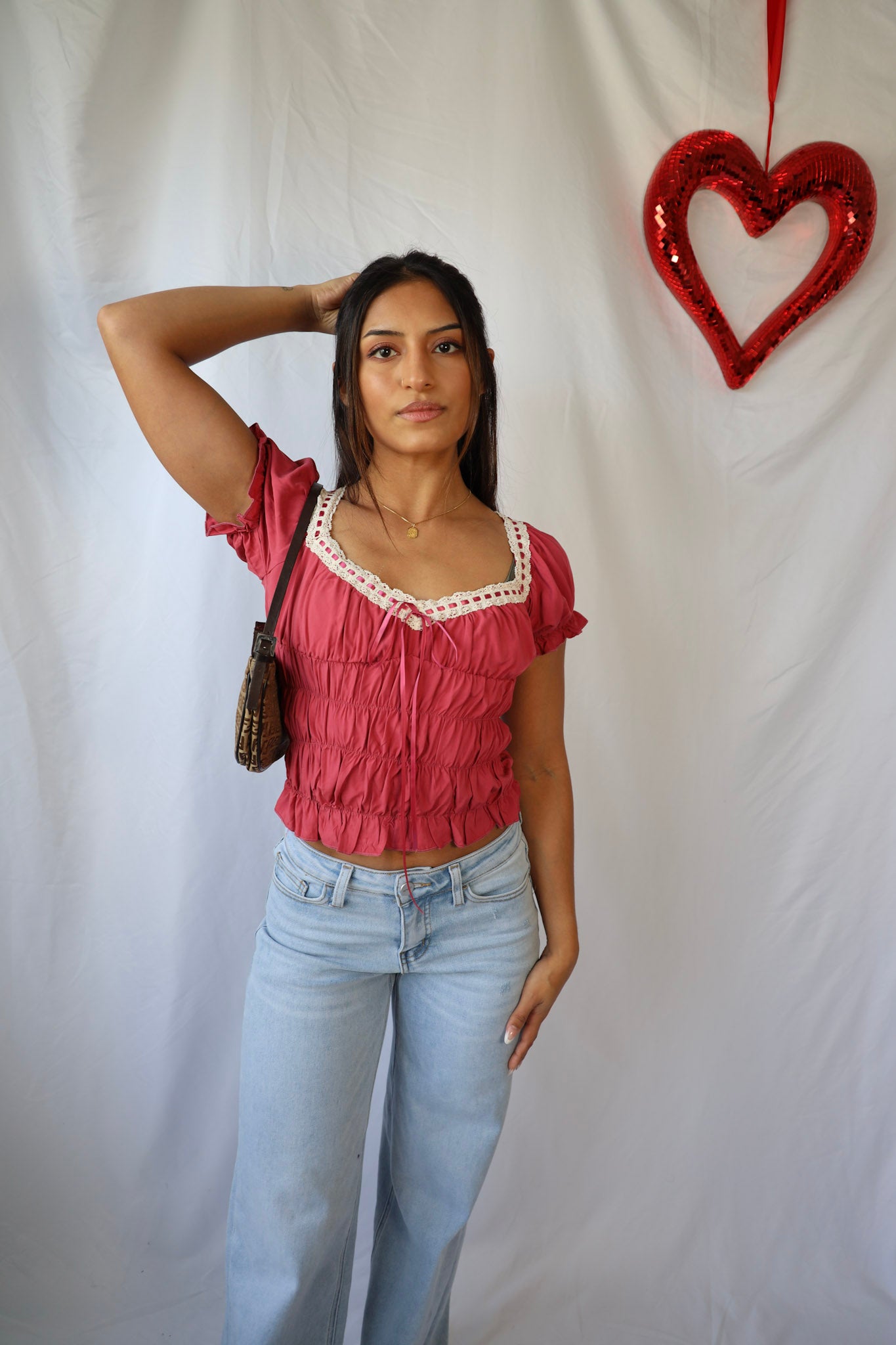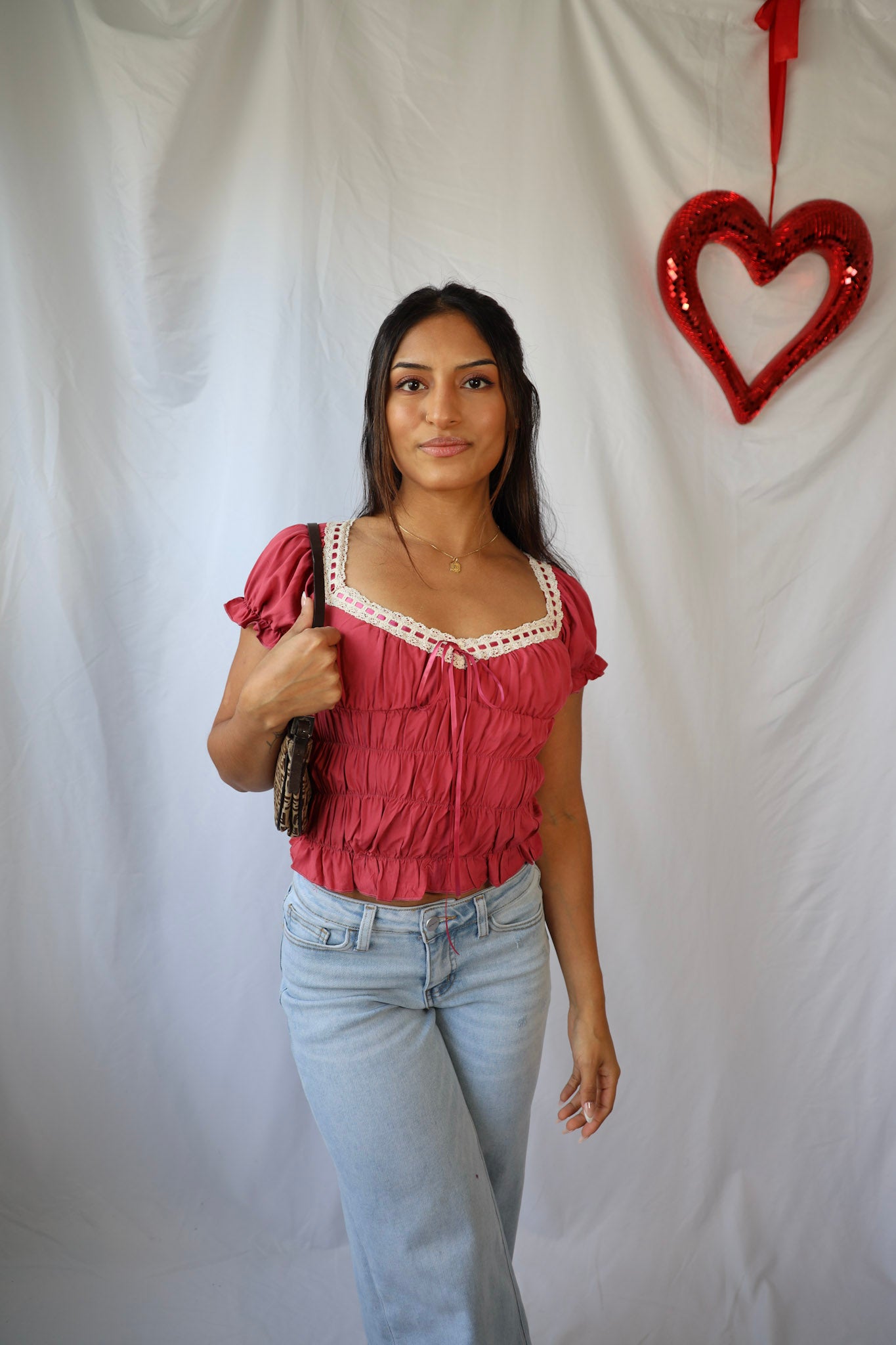 Get ready for Valentine's Day with our Vintage Lace Sweetheart Top! The delicate lace details add a touch of vintage inspiration to this flirty top. Perfect for a romantic date or a fun night out with friends.