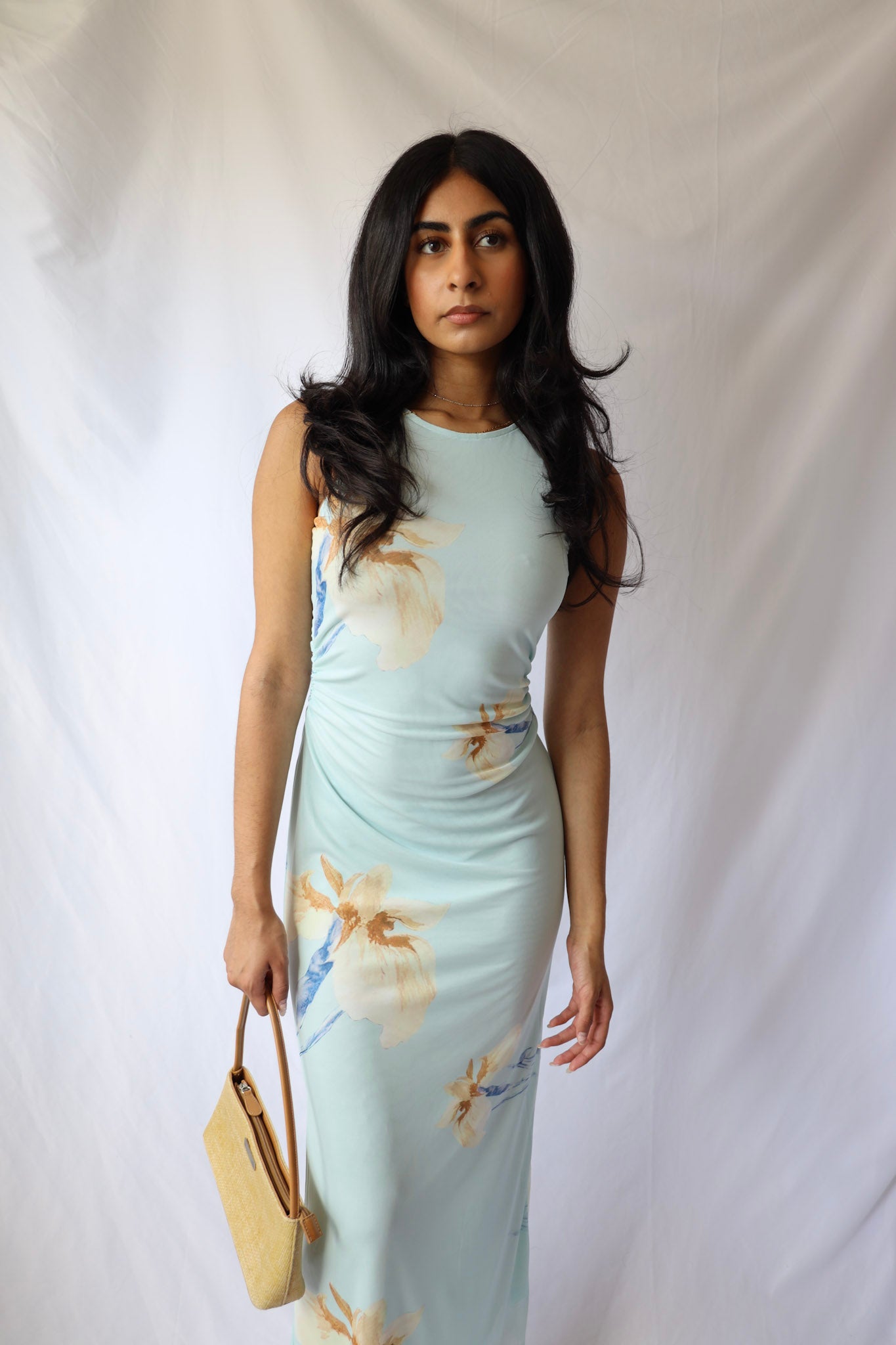 Be the life of every party with this y2k-inspired Baby Blue Mesh Floral Dress. The double-lined mesh fabric guarantees a comfortable and flattering fit, while the large floral print adds a touch of whimsy. Perfect for weddings, summer vacations, or any special occasion. 💙🌸
