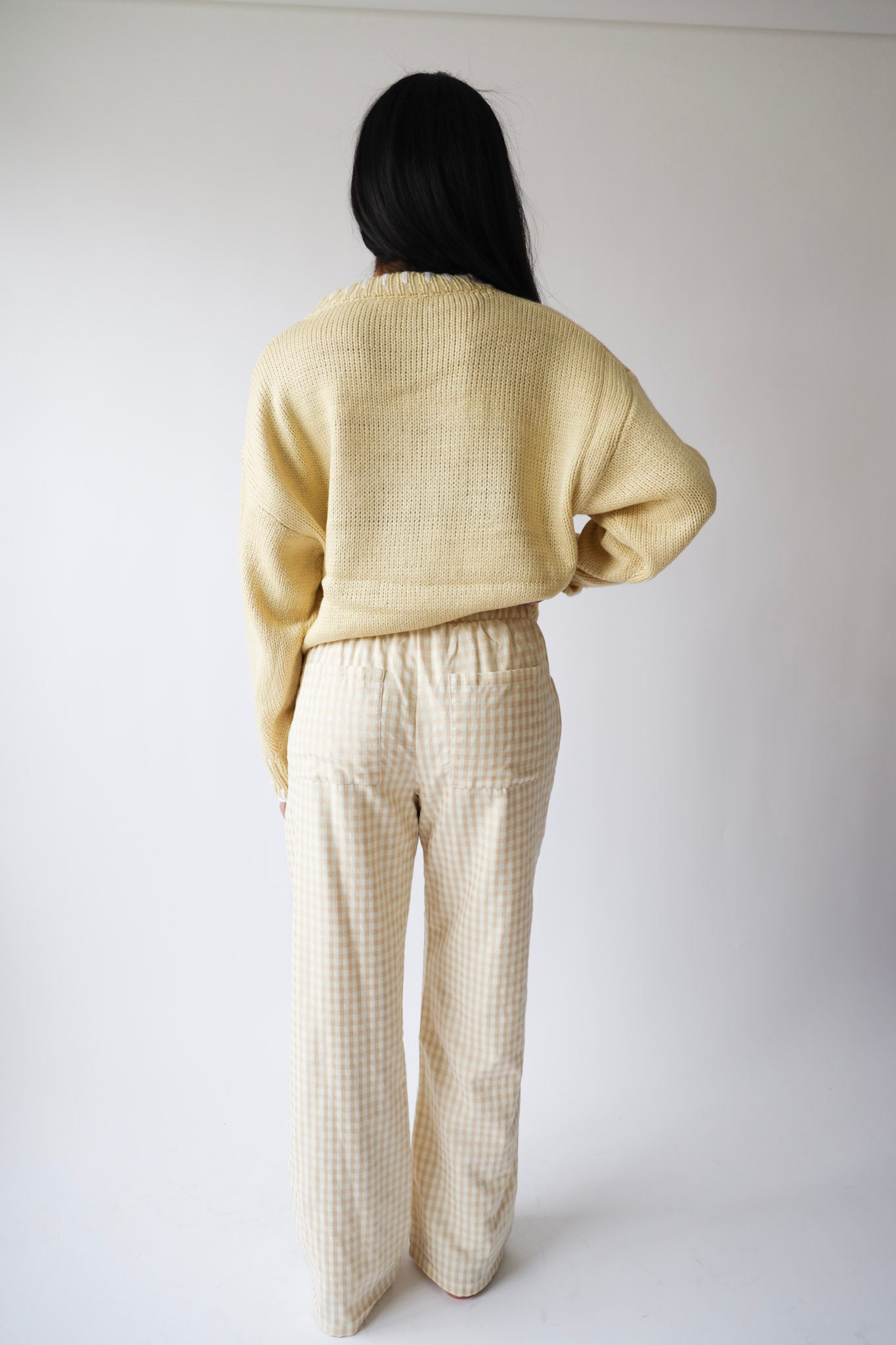 Cute, cozy, and coquette-approved. This oversized butter yellow sweater features a bold white bow motif and a relaxed silhouette that’s equal parts charming and comfortable. Ideal for transitional spring weather or chilly summer evenings — just throw on and go.