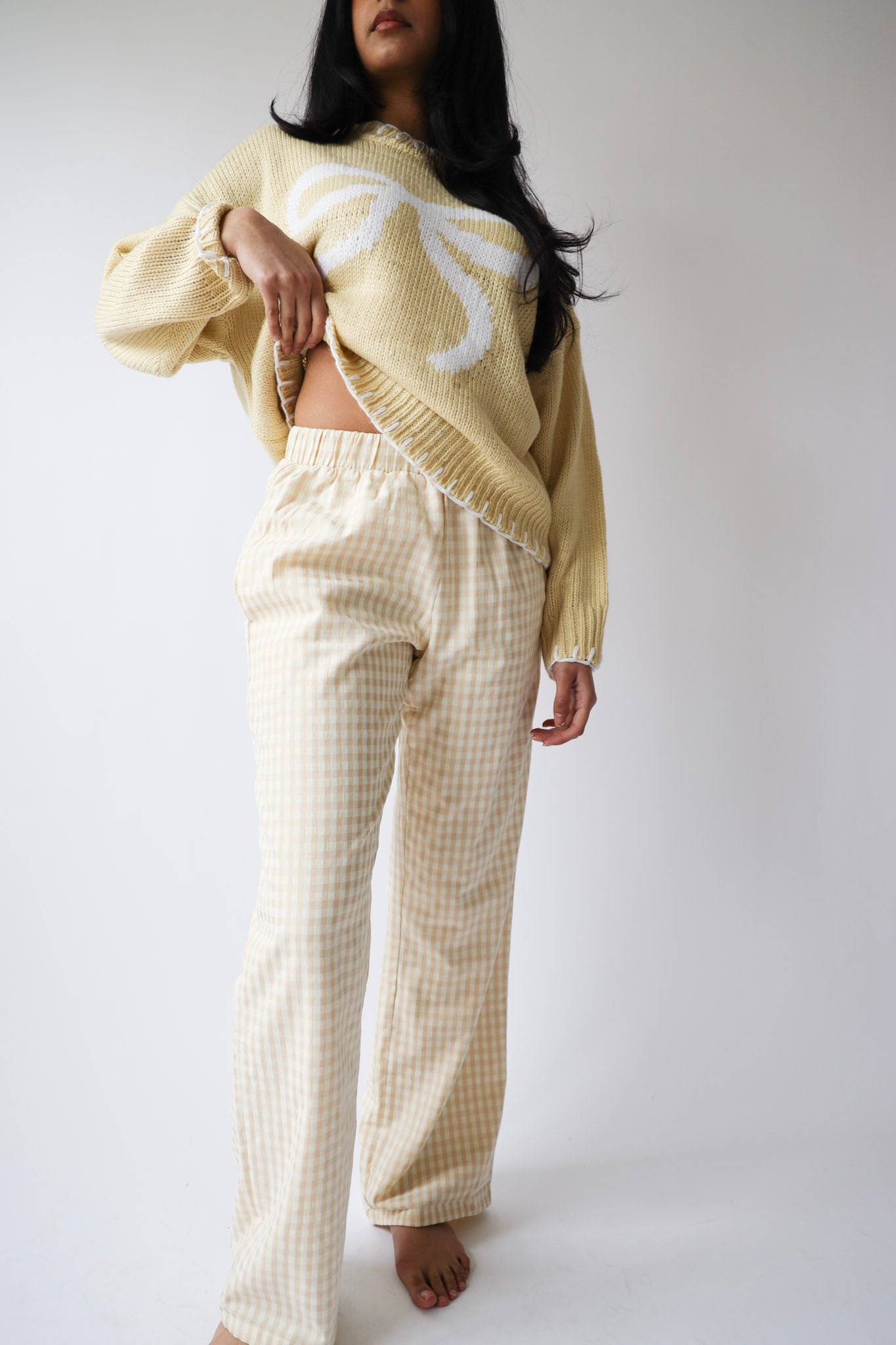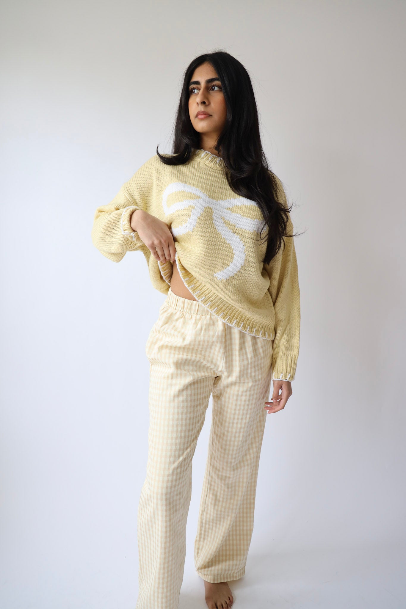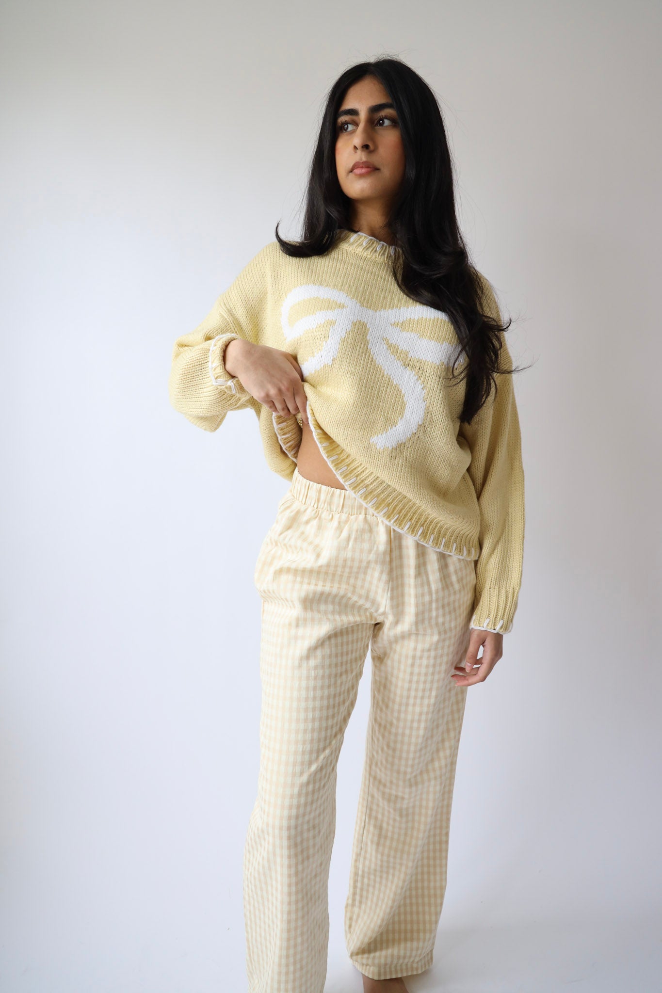 Soft yellow knit with oversized white bow