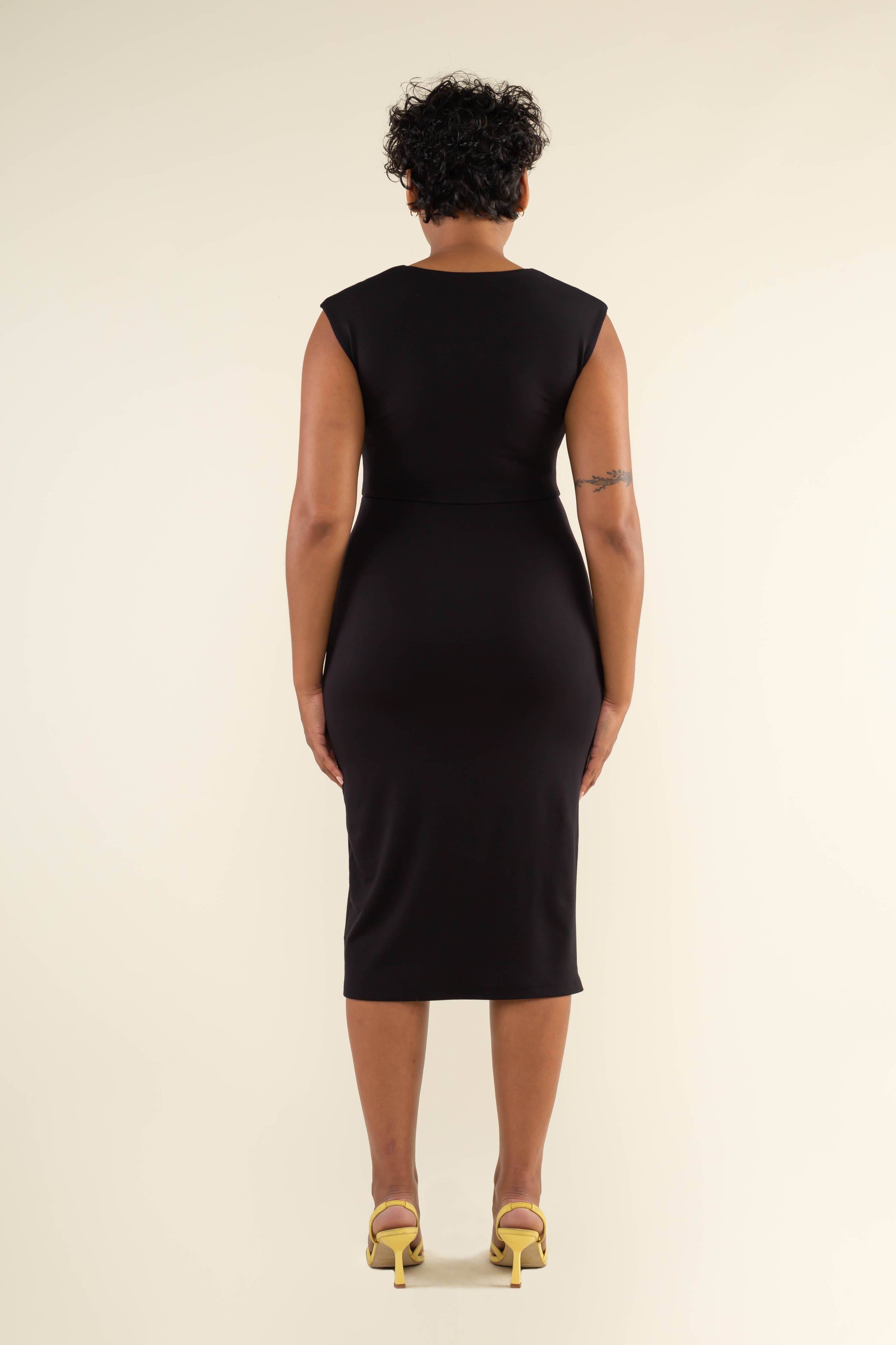 A fabulously flattering midi dress with a square neckline. The top boasts a double layer for added reinforcement. Constructed from luxurious jersey fabric for a super soft touch. Only in Brown, with a chic chocolate brown color, a nod to 90s fashion, and a timeless appeal.