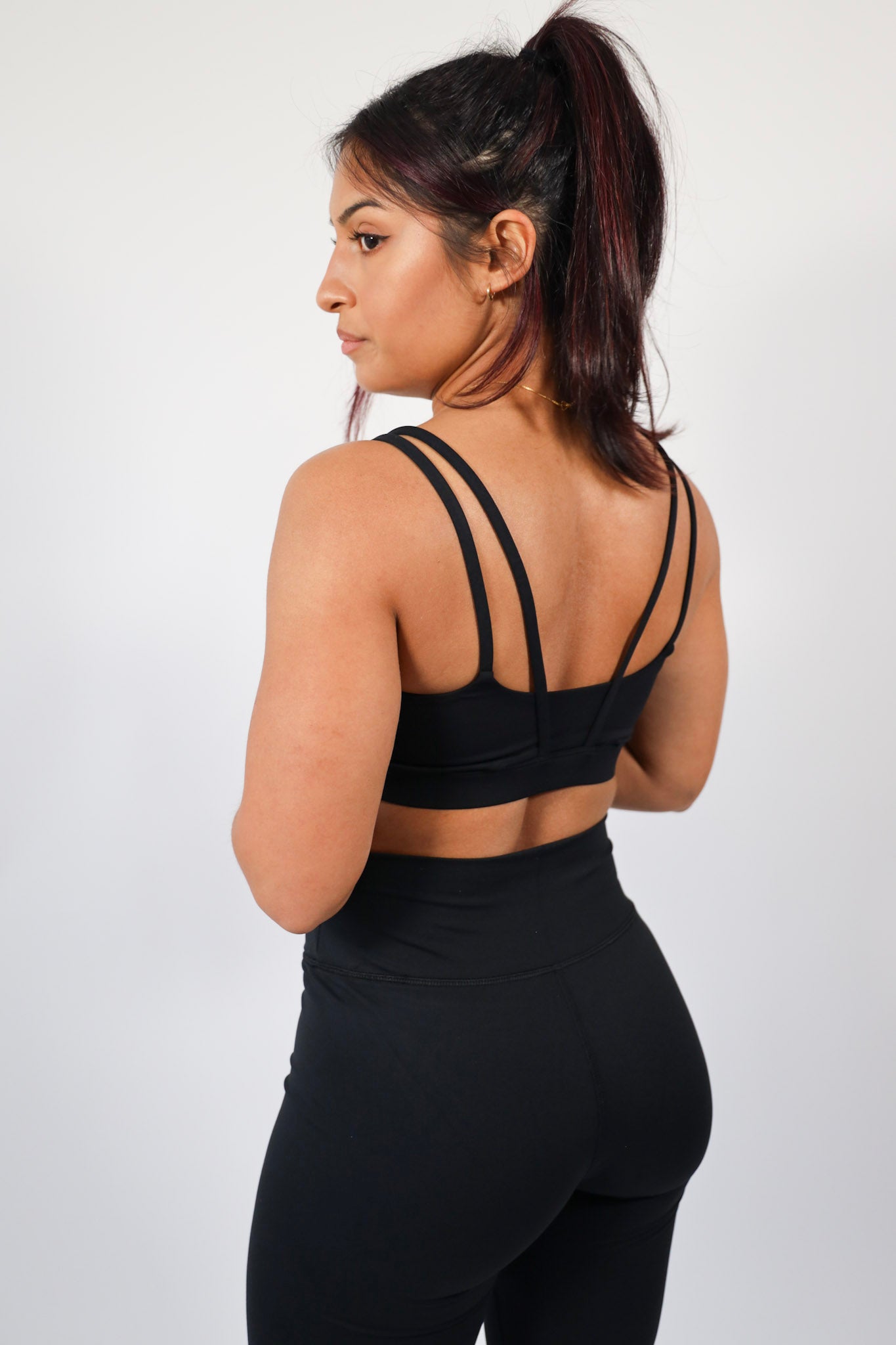 Designed for those low-impact days or when you're just vibing at the gym, it's got that light support you crave. Padded for extra perkiness, and those strappy details? Total game-changer. It's not just a sports bra; it's your go-to for looking cute while breaking a sweat.
