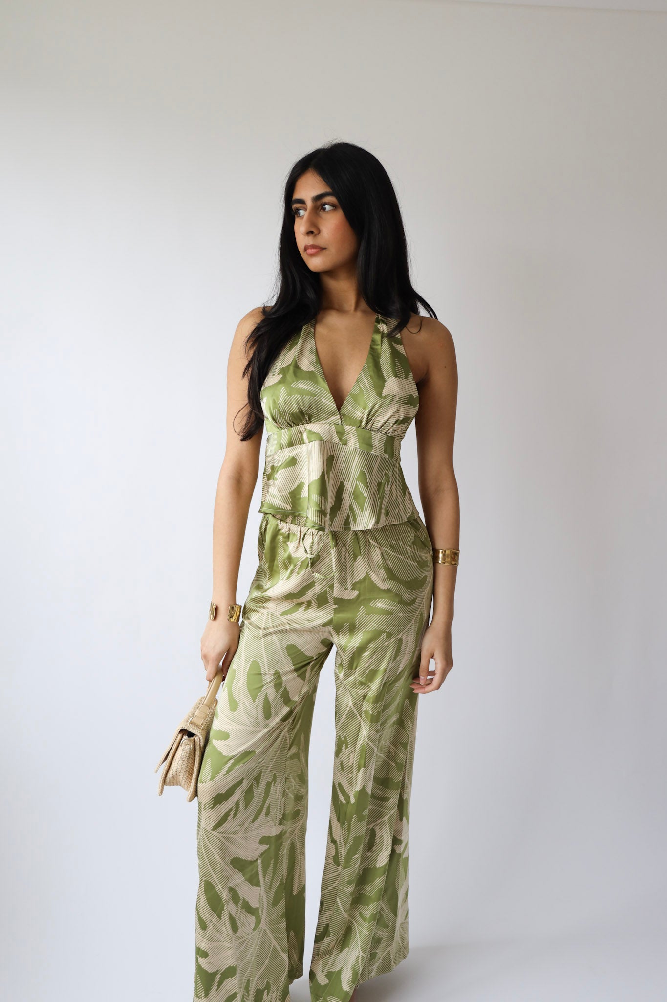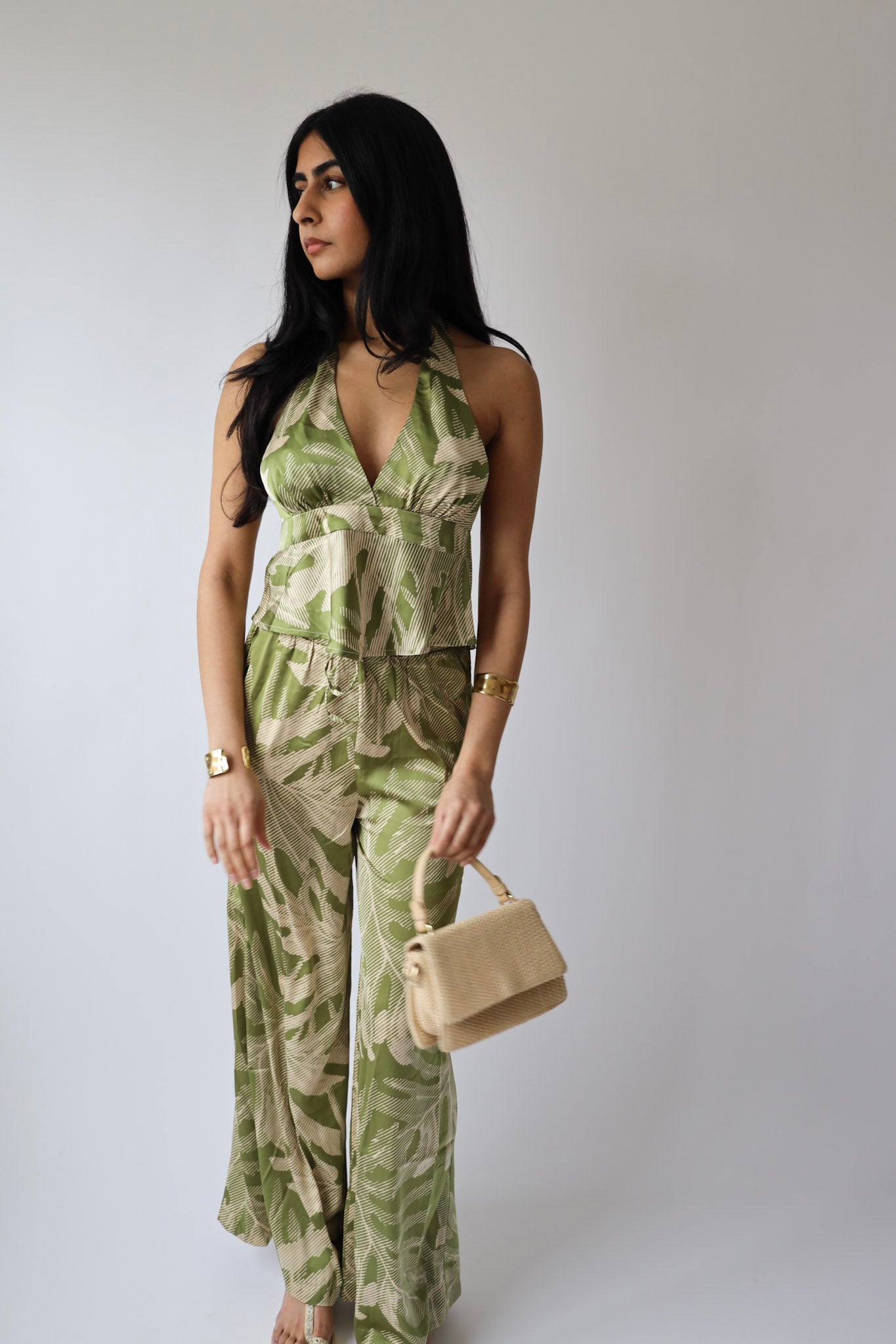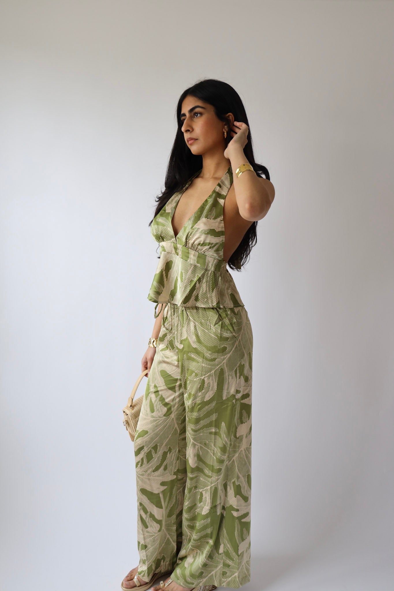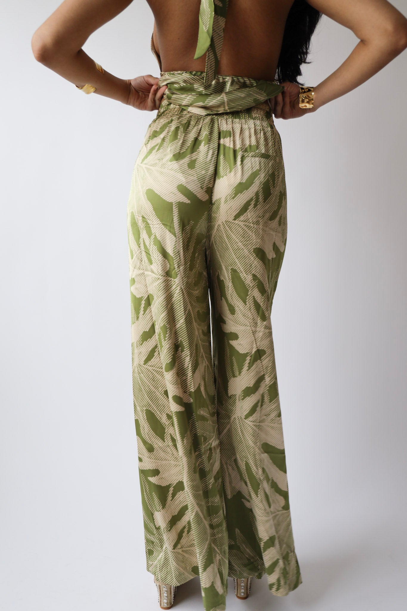 Soft, flowy, and ready for the sun. These wide-leg pants in a green palm print are made from breezy woven fabric with a relaxed high-waist fit. Whether you’re lounging, beach-bound, or just pretending you are — they’re the perfect pick.