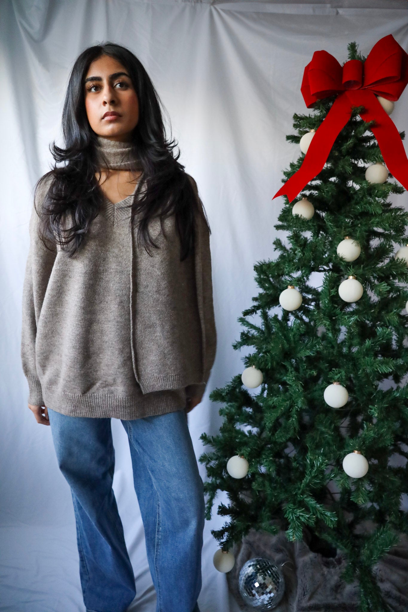 Introducing the ultimate winter essential - our Solid Loose Fit Long Sleeve Sweater! Stay warm and stylish with its oversized, cozy fit and added bonus: a matching scarf! A must-have for any chilly weather adventure.