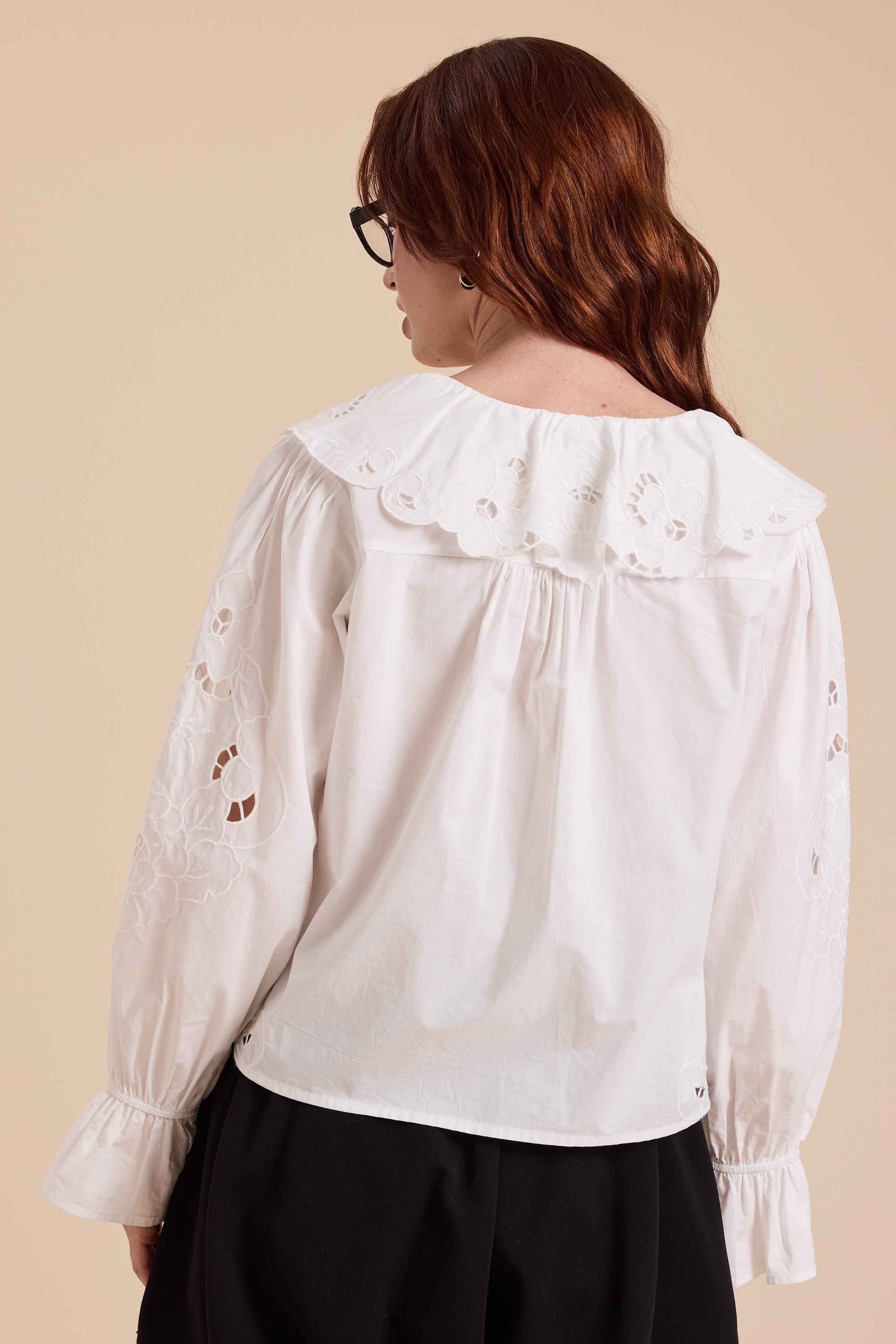 Romantic meets resort-ready 💌 This white cropped blouse features dreamy eyelet embroidery and a scalloped hem that’s made for breezy summer days. With balloon sleeves and a boxy silhouette, it gives just the right amount of drama — whether you’re wandering cobblestone streets or heading to brunch by the sea.