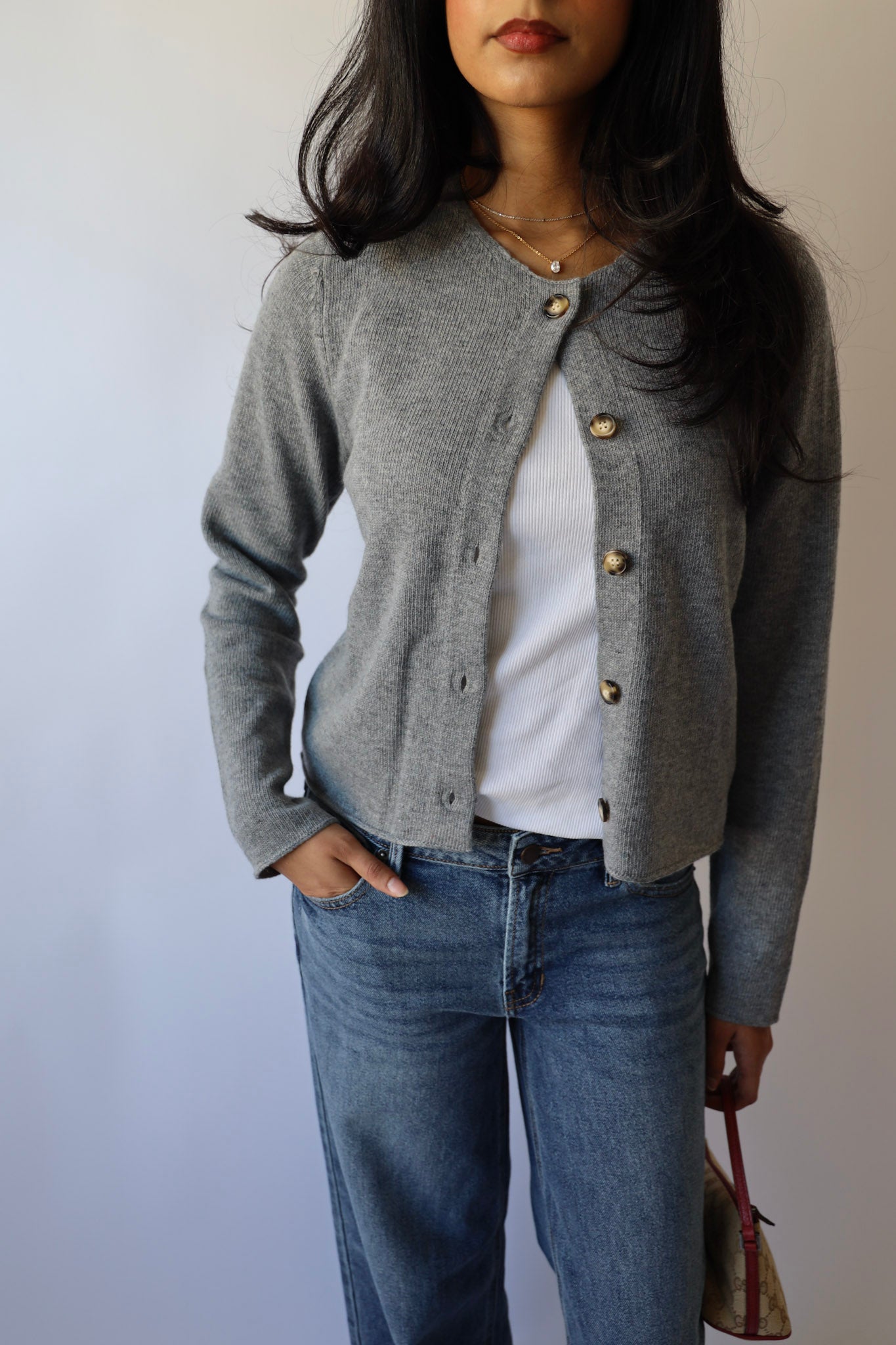 This Cardigan is the perfect addition to your wardrobe. With a chic cropped length and stunning tortoise button details, this light-weight knit cardigan offers a modern touch to a classic design. Transition through the seasons in style by layering it over a tee or buttoning it up for a charming look. (Get ready to slay, fashionistas!)